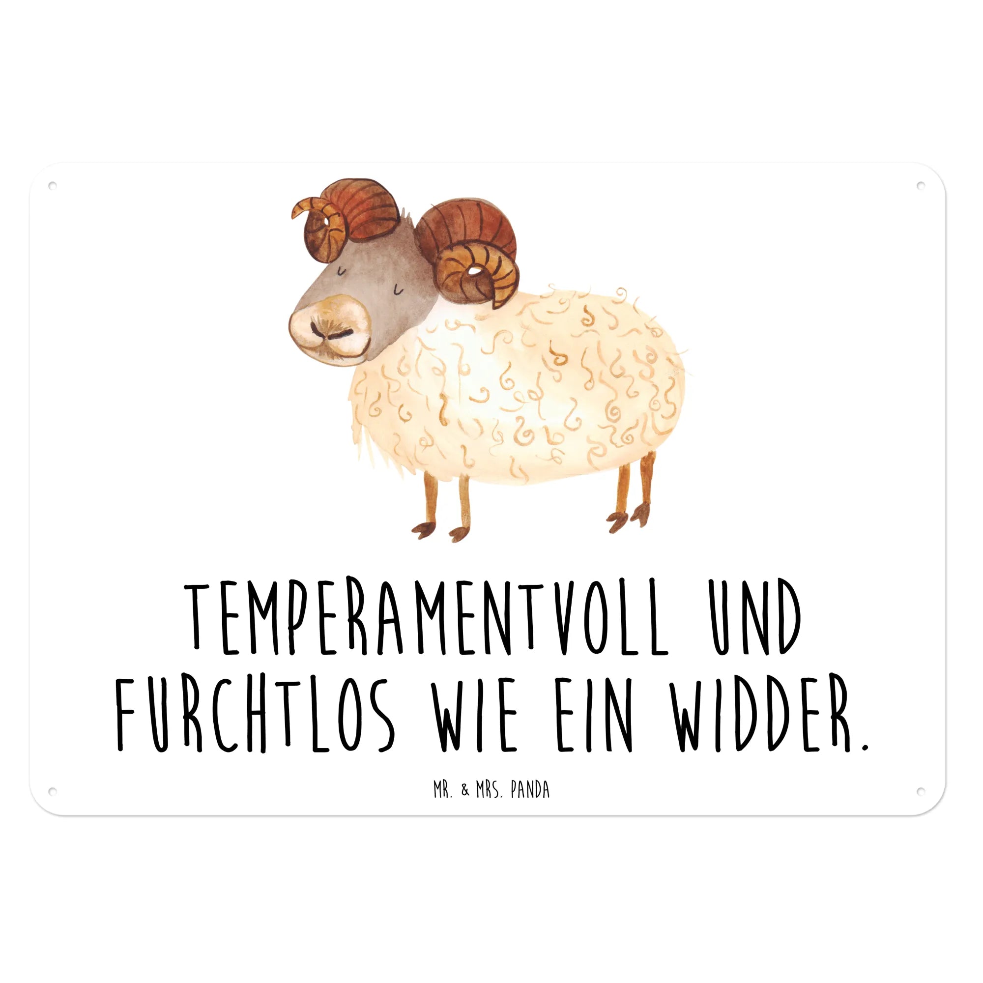 Entdecke das einzigartige Blechschild mit dem Motiv des Sternzeichens Widder von Mr. & Mrs. Panda! Dieses wundervolle Deko-Schild setzt deinen persönlichen Stil perfekt in Szene und zaubert jedem ein Lächeln ins Gesicht. Der Widder, mit seinem temperamentvollen und furchtlosen Charakter, wird durch den Spruch 'Temperamentvoll und furchtlos wie ein Widder' lebendig. Es ist nicht nur ein tolles Stück Wanddeko, sondern auch ein perfektes Geschenk für alle Widder-Geburtstagskinder im März und April!