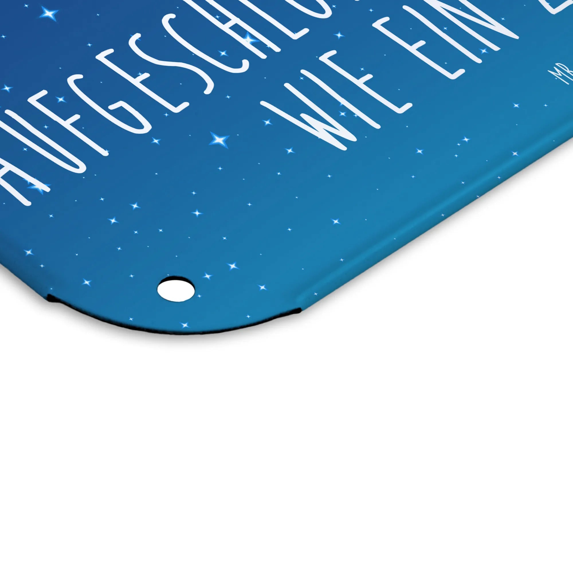 Die seidenmatte Oberfläche und die abgerundeten Ecken machen das Design nicht nur optisch ansprechend, sondern auch widerstandsfähig. Mit vier vorbereiteten Bohrungen lässt sich das Schild problemlos anbringen – egal ob in der Küche, im Wohnzimmer oder im Kinderzimmer. Pflegeleicht ist es obendrein: Ein einfaches Abwischen mit einem feuchten Tuch genügt, um es glänzend zu halten.