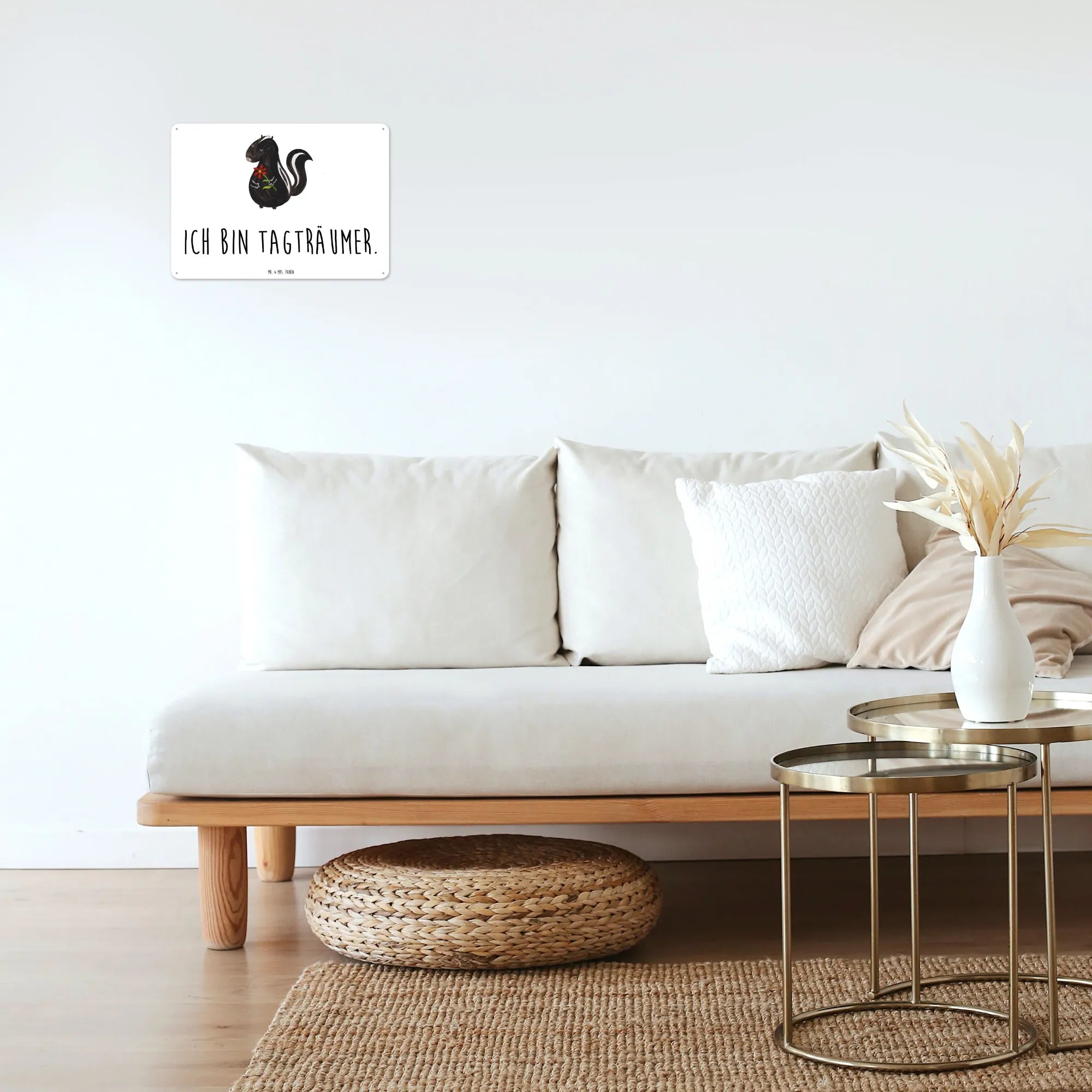 Das wunderschöne Blechschild mit dem zauberhaften Stinktier-Motiv und dem Slogan "Ich bin Tagträumer" ist das perfekte Geschenk für alle, die kleinere und größere Träume haben und eine Prise Fantasie in ihr Zuhause bringen möchten! Dieses Metallschild eignet sich ideal als Wanddekoration oder für die Tür und wird schnell zum Hingucker in jedem Raum.