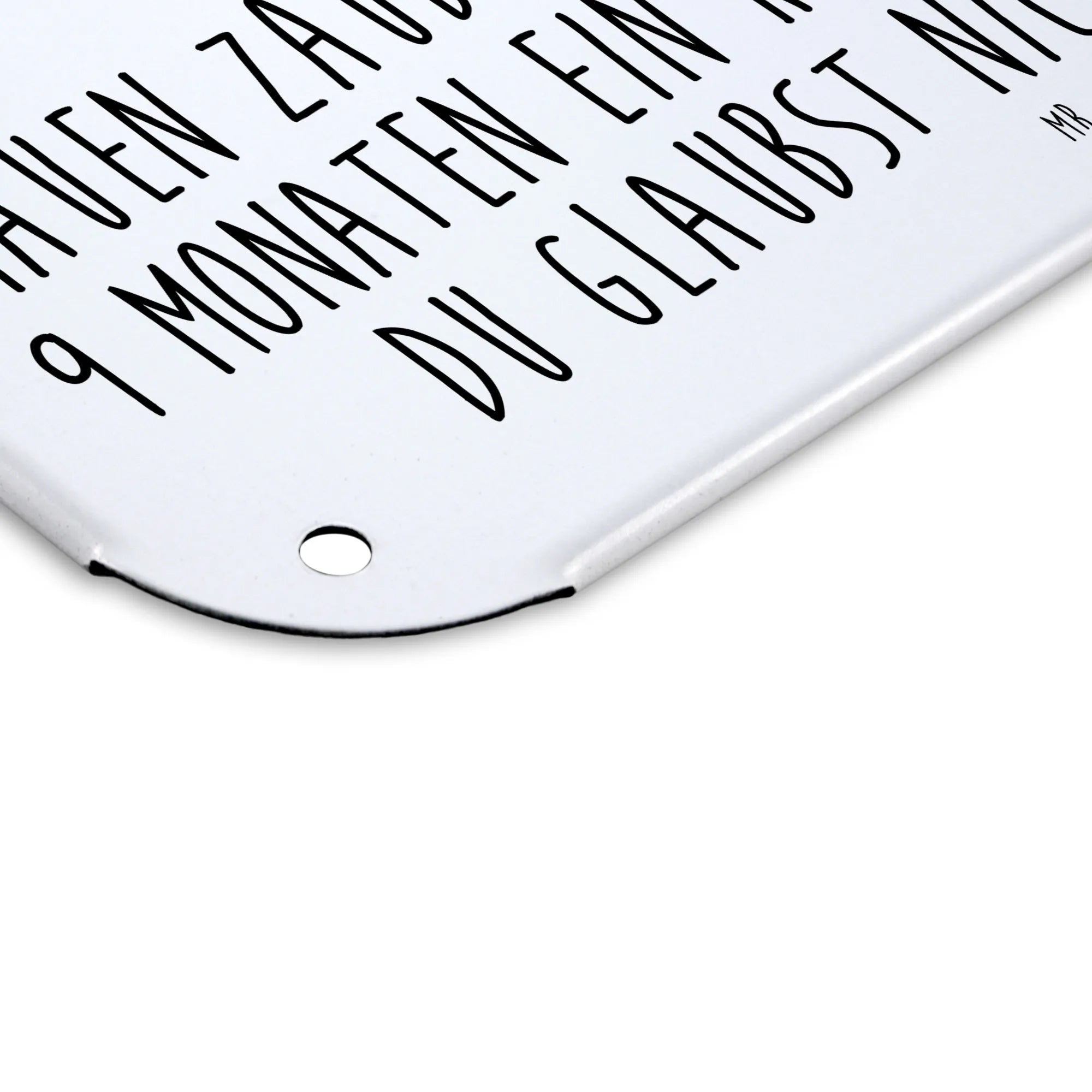 Es ist das optimale Geschenk für Babypartys oder als Aufmerksamkeiten zur Geburt. Durch den humorvollen Spruch und das süße Design bringt es Freude in jedes Zuhause und ist ein schönes Andenken an eine der aufregendsten Phasen im Leben. Also, wenn du auf der Suche nach einem ganz besonderen Geschenk zur Geburt, Schwangerschaft oder einfach nur zur Verschönerung von Wänden bist, dann ist dieses Blechschild der perfekte Begleiter. Ein Stück Lebensfreude, das sich jeder werdende oder frischgebackene Elternteil in die Wohnung hängen möchte!