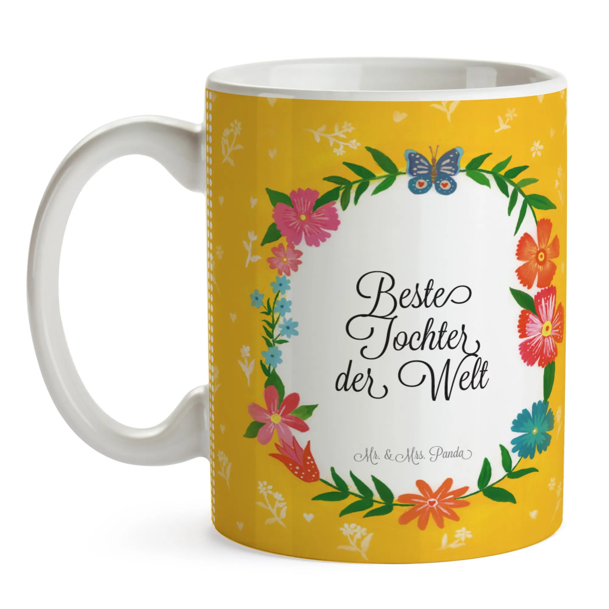 Verleihe deinem Morgen- oder Nachmittagstee eine besondere Note mit der charmanten Kaffeetasse von Mr. & Mrs. Panda! Diese Keramiktasse hat eine Höhe von 90 mm und eine Breite von 90 mm, mit einer Füllmenge von 325 ml. Hergestellt aus hochwertiger Keramik, ist sie spülmaschinenfest und hält bis zu 2000 Waschgängen in der Spülmaschine stand. Ihre besondere glänzende Oberfläche und die einzigartigen Designs vom Mr. & Mrs. Panda Team machen jede Tasse zu einem Unikat. Ob für dich selbst oder als zauberhaftes Geschenk für einen lieben Menschen – diese Tasse erhellt jeden Moment und bringt Freude ins Leben. Genieße deinen Kaffee, Tee oder Kakao stilvoll und mit einem Lächeln!