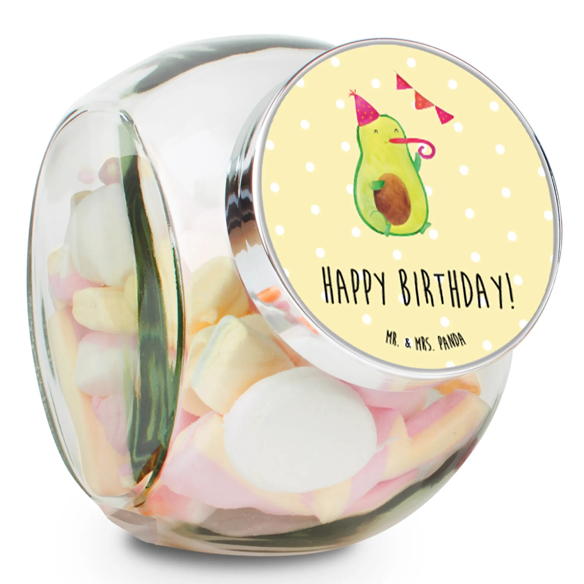 Dieses wunderschöne Bonbonglas von Mr. & Mrs. Panda mit dem niedlichen Motiv "Avocado Birthday" ist der perfekte Begleiter für alle, die Süßes lieben und gleichzeitig Wert auf stilvolle Aufbewahrung legen.