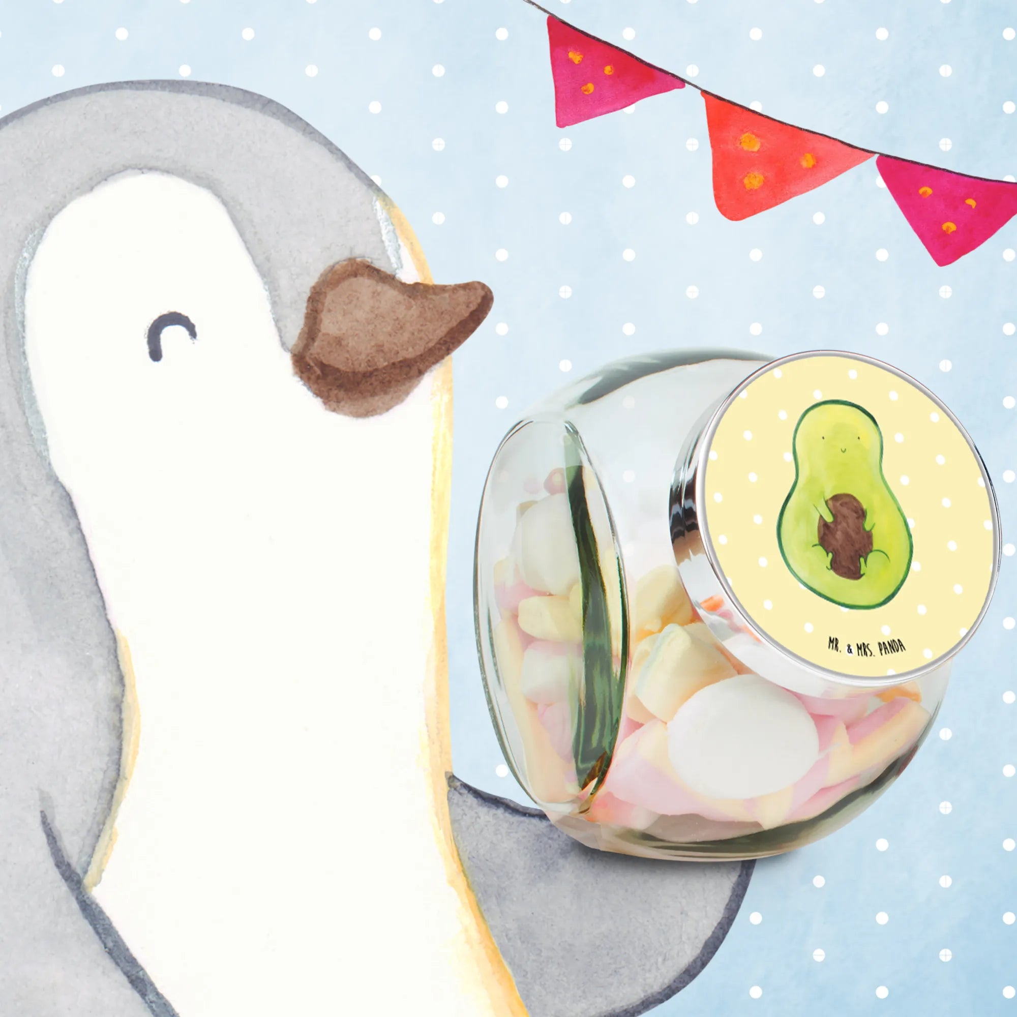 Das wunderschöne Bonbonglas von Mr. & Mrs. Panda mit dem charmanten Motiv einer Avocado mit Kern ist das perfekte Geschenk für all jene, die gesunde Lebensweise und eine Portion Spaß in ihr Zuhause bringen möchten!