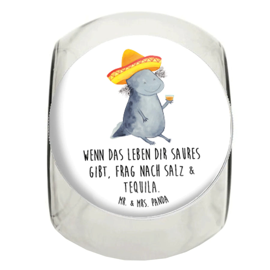 Das wunderschöne Bonbonglas mit dem einzigartigen Axolotl Tequila Motiv von Mr. & Mrs. Panda ist der perfekte Begleiter für alle Süßigkeiten- und Teegenießer! Mit einem Füllvolumen von 870 ml bietet es ausreichend Platz für deine Lieblingssnacks, sei es Kaffee, Kekse oder die süßesten Bonbons.