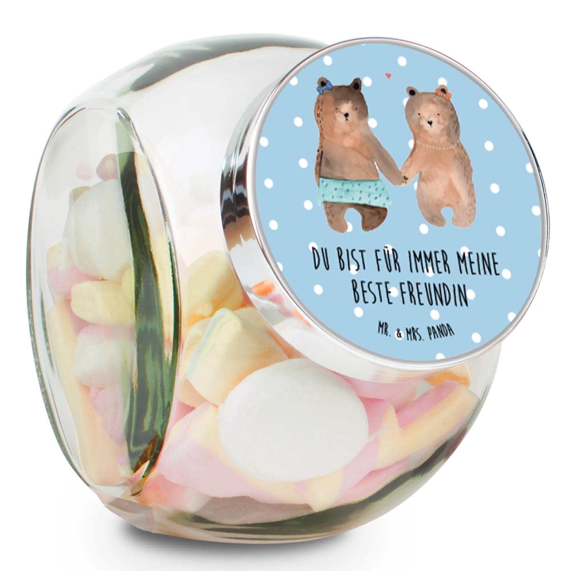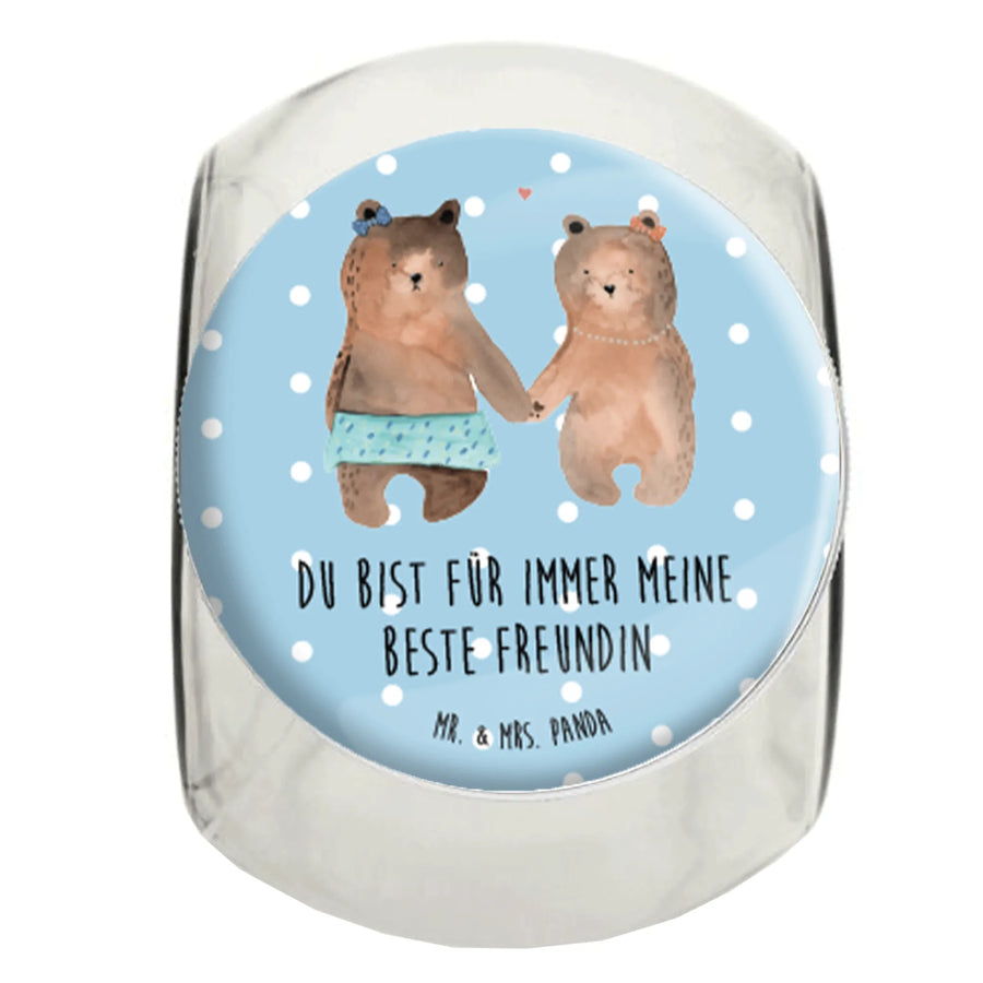 Entdecke unser wunderschönes Bonbonglas mit dem zauberhaften Motiv "Bär Freundin" aus der Bärenkollektion von Mr. & Mrs. Panda. Dieses geschmackvolle Vorratsglas ist das perfekte Geschenk für deine beste Freundin oder für jeden, der die zauberhaften Bären liebt. Mit der liebevollen Illustration zweier Bärenmädchen, die sich an den Händen halten, zeigst du auf eine charmante Art und Weise, wie viel dir deine Freundschaften bedeuten. Der süße Slogan "Du bist für immer meine beste Freundin" verleiht dem Bonbonglas eine persönliche Note und macht es zu einem liebevollen Liebesbeweis.