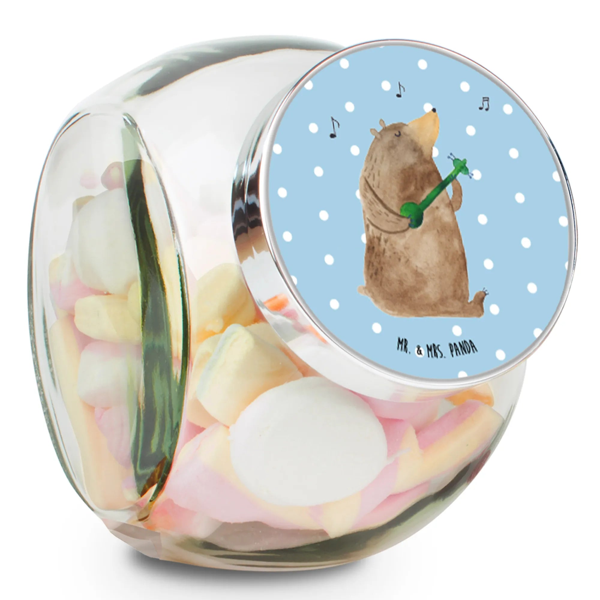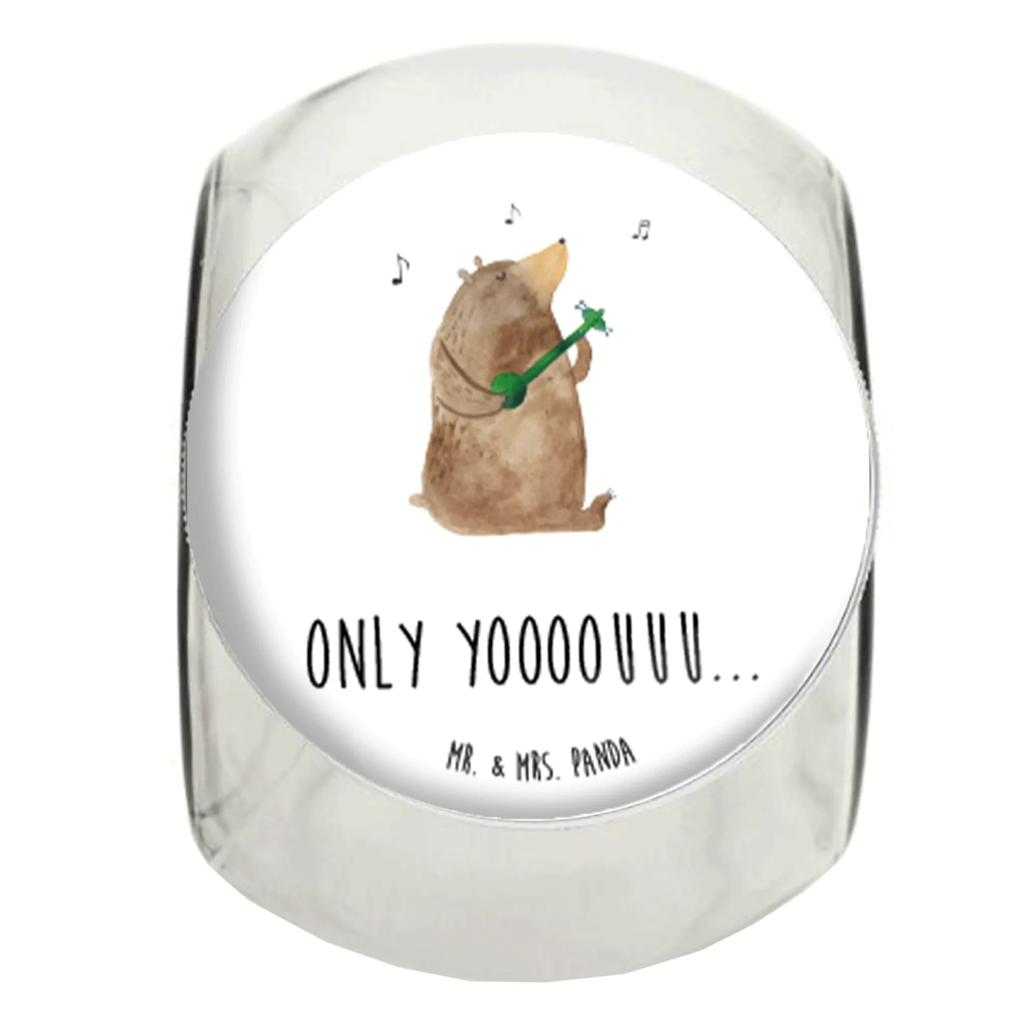 Das wunderschöne Bonbonglas von Mr. & Mrs. Panda mit dem Motiv 'Bär Gitarre' ist das perfekte Geschenk für alle Musikliebhaber und Naschkatzen! 🎸