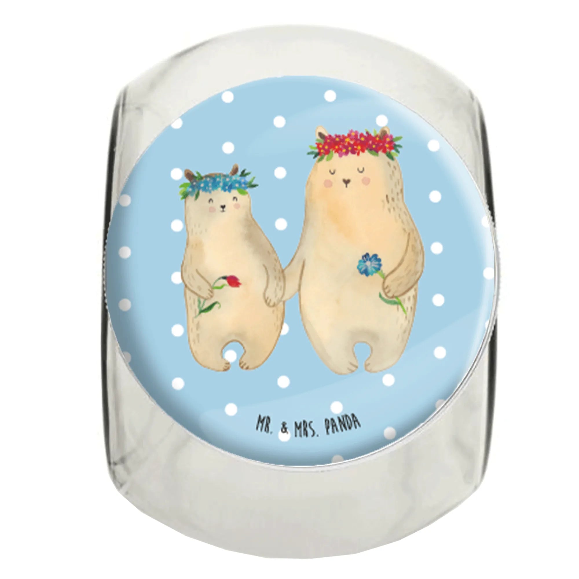 Das Motiv zeigt zwei liebevolle Bären, die mit einem Blumenkranz geschmückt sind. Der eine Bär hält eine rote Blume, während der andere eine blaue Blume bei sich trägt. Dieses niedliche Design vermittelt Freude und Liebe, perfekt für jeden Anlass. Wenn du auf der Suche nach einem durchdachten Geschenk zum Muttertag, für deine Lieblingsmama oder einfach für dich selbst bist, ist dieses Bonbonglas von Mr. & Mrs. Panda genau das Richtige!