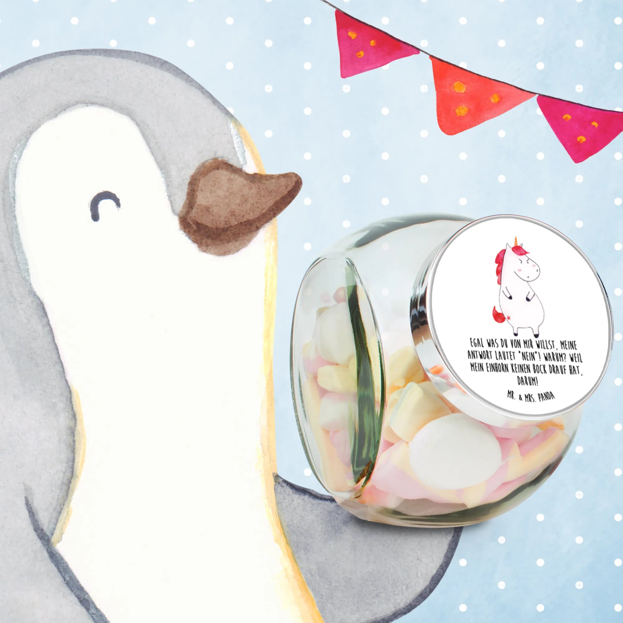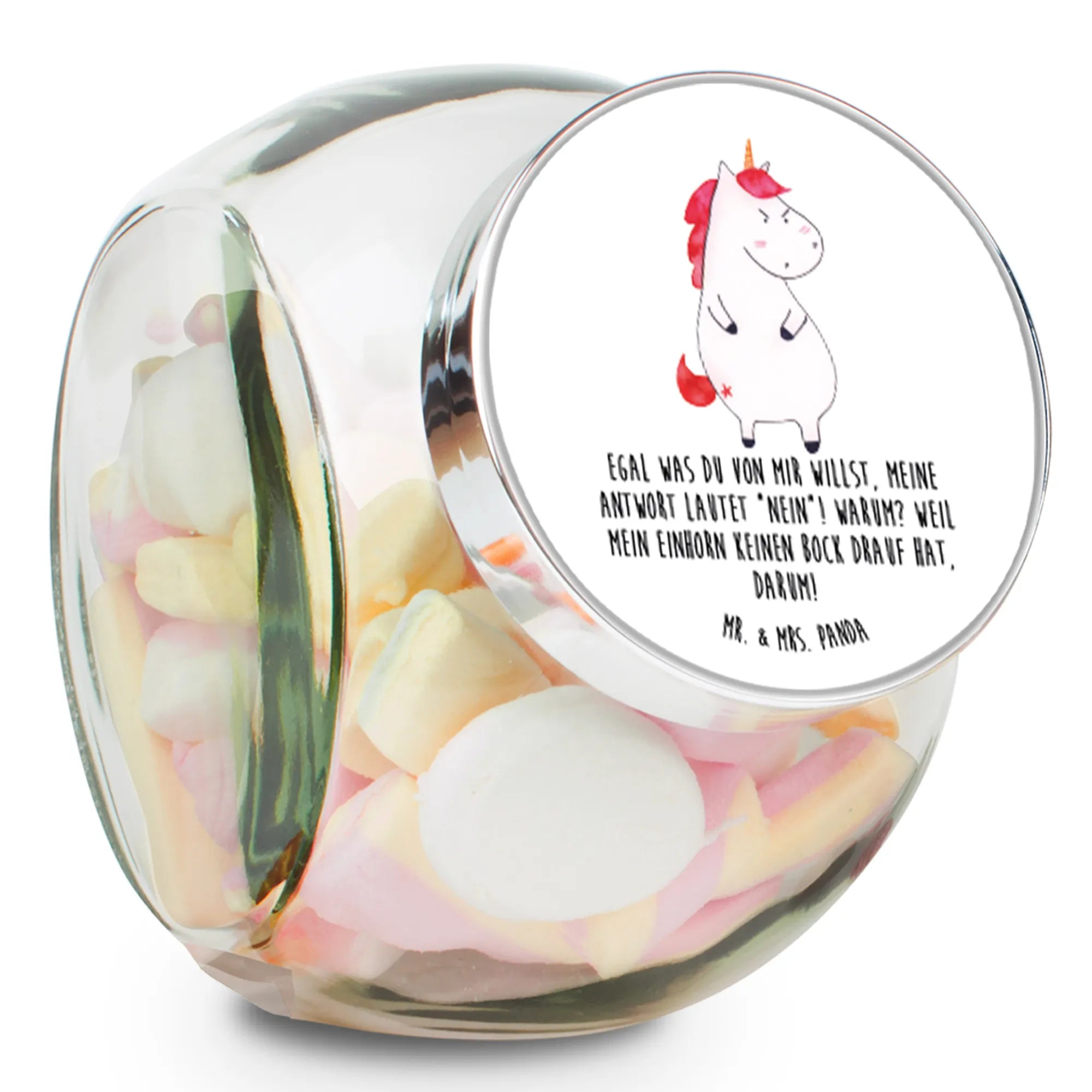 Kennst du schon unser wunderschönes Bonbonglas mit dem wütenden Einhorn-Motiv? Dieses Bonbonglas von Mr. & Mrs. Panda ist das perfekte Aufbewahrungsprodukt für all deine Süßigkeiten, Kekse, Müsli, Kaffee oder Tee. Mit einem Füllvolumen von 870 ml ist es groß genug, um deine Lieblingssnacks frisch und aromatisch aufzubewahren.