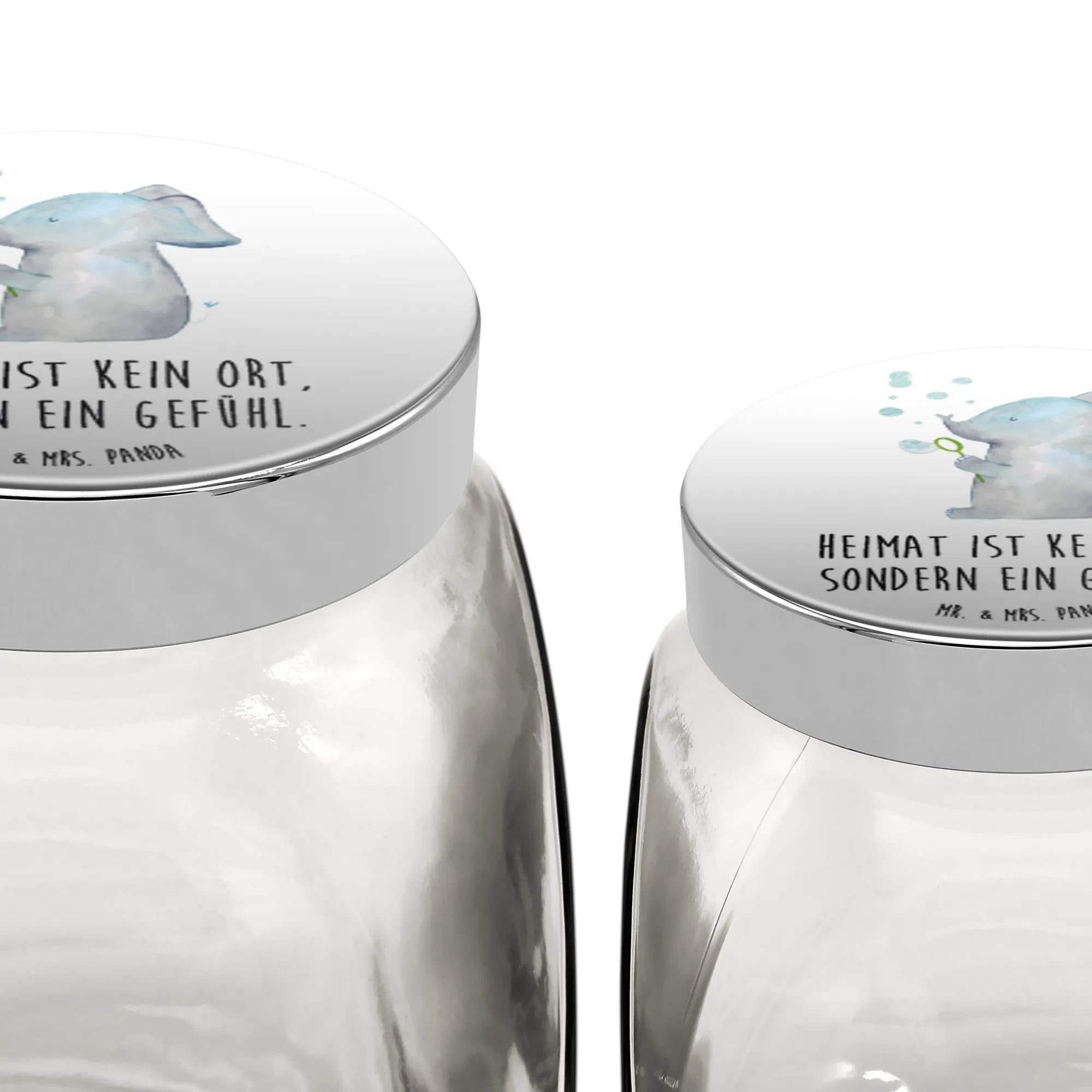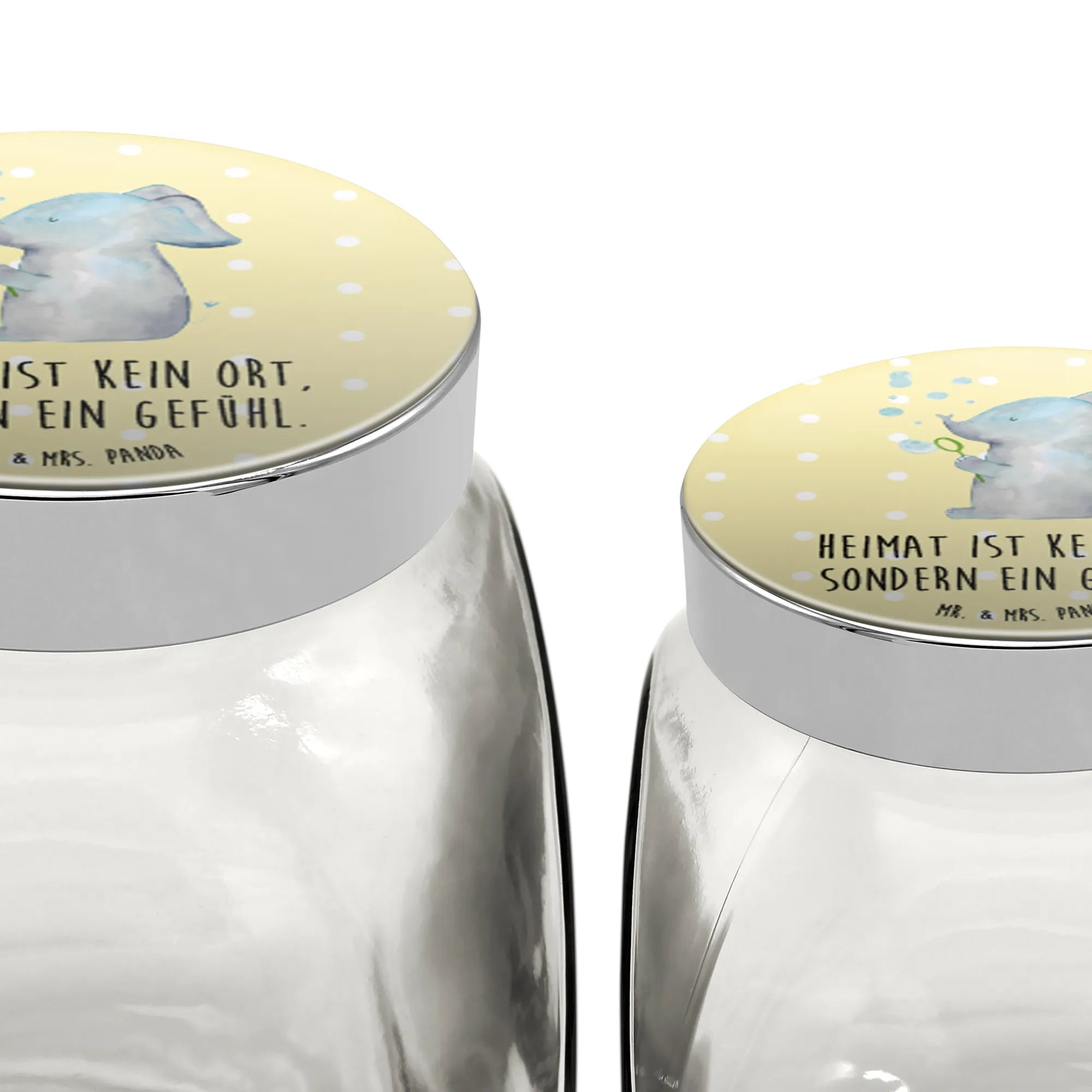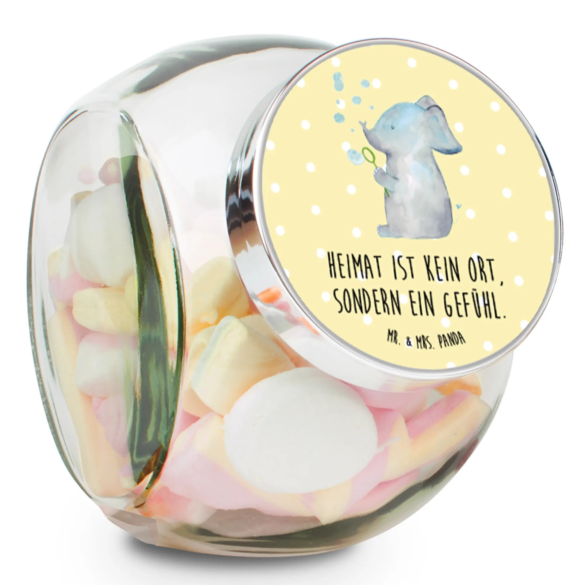 Das wunderschöne Bonbonglas mit dem Motiven "Elefant Seifenblasen" von Mr. & Mrs. Panda ist mehr als nur ein Vorratsbehälter; es ist ein Stück Freude für dein Zuhause!