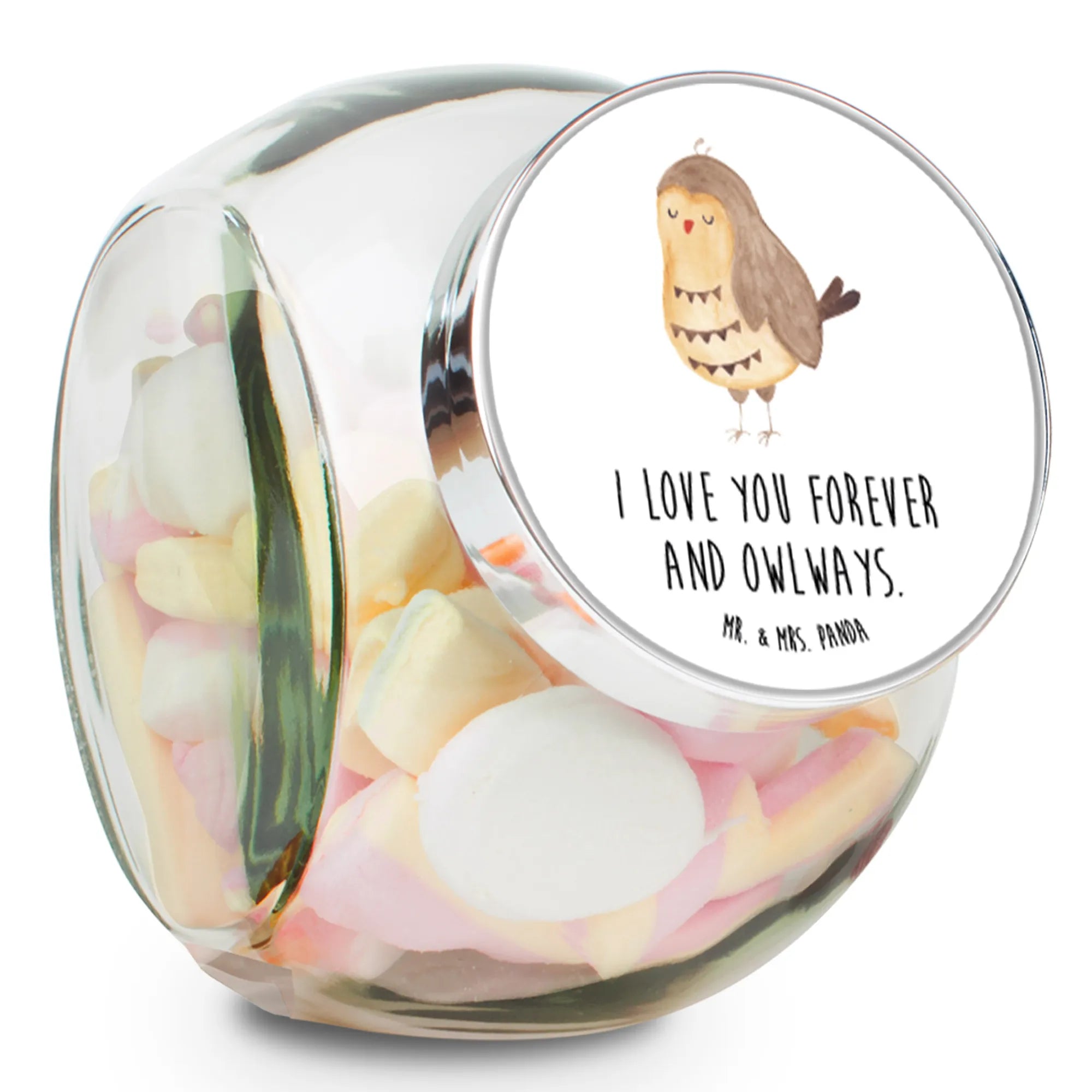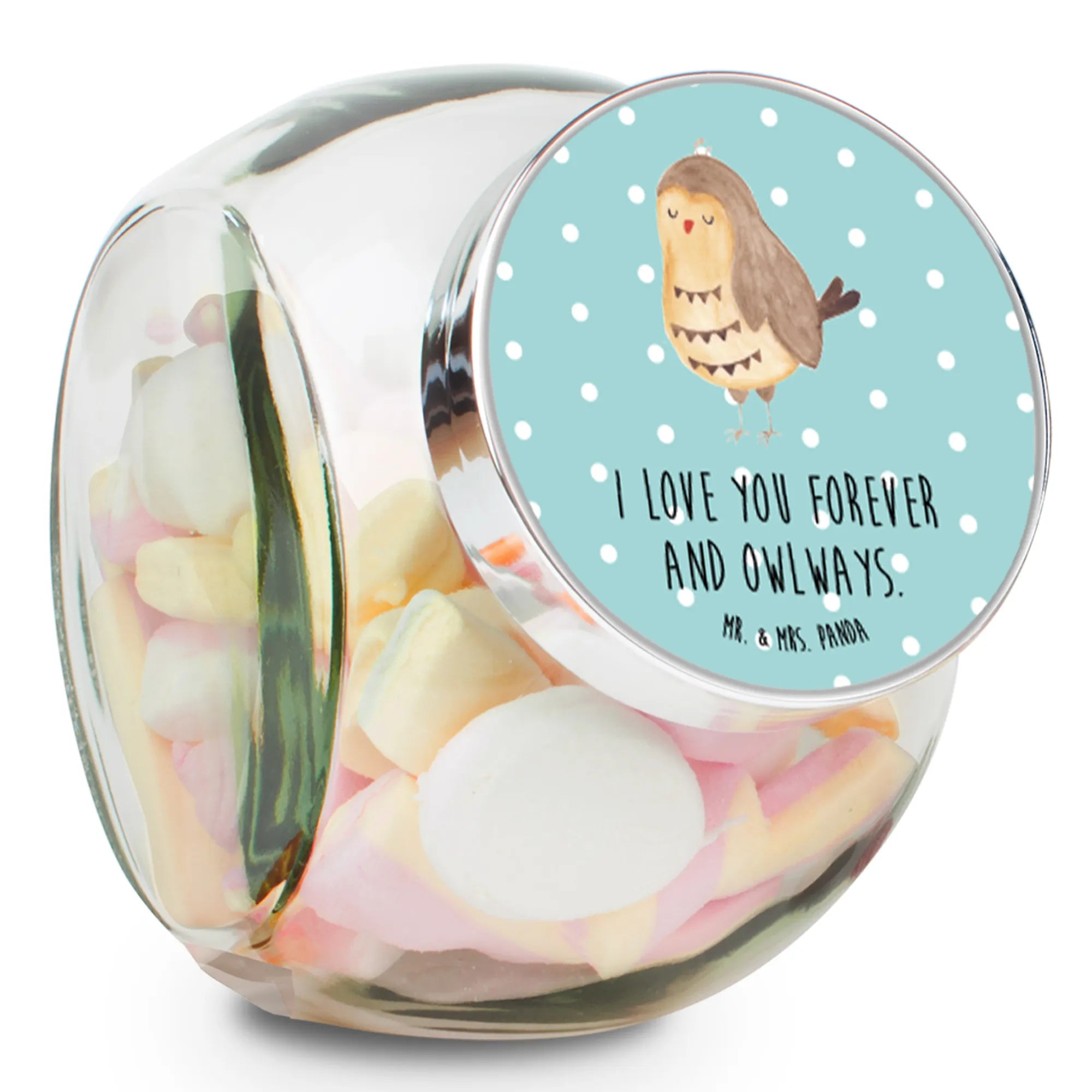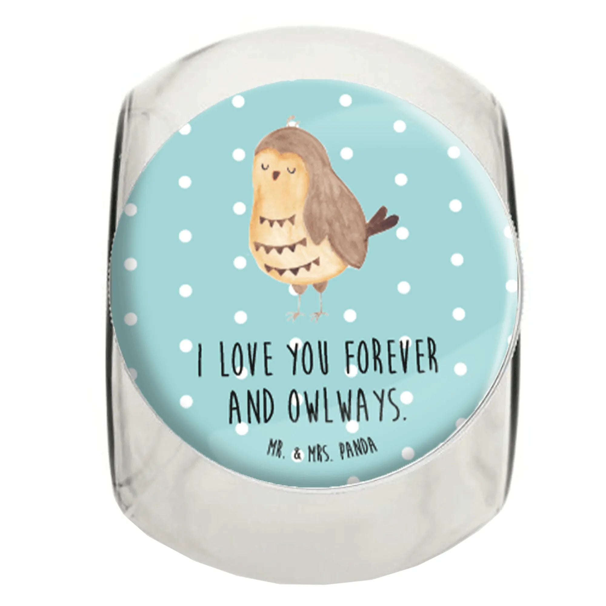 Das wunderschöne Bonbonglas "Eule Zufrieden" von Mr. & Mrs. Panda ist der perfekte Begleiter für alle Naschkatzen und Eulenliebhaber! Mit diesem tollen Vorratsbehälter kannst du nicht nur Süßigkeiten, sondern auch Kekse, Müsli, Tee und Gewürze stilvoll aufbewahren. Die niedliche Eule mit ihrem charmanten Spruch "I love you forever and owlways." verleiht dem Glas eine besondere Note und bringt ein Lächeln in dein Zuhause. Egal ob für die eigenen vier Wände oder als liebevolles Geschenk, dieses Bonbonglas ist ein echter Blickfang.
