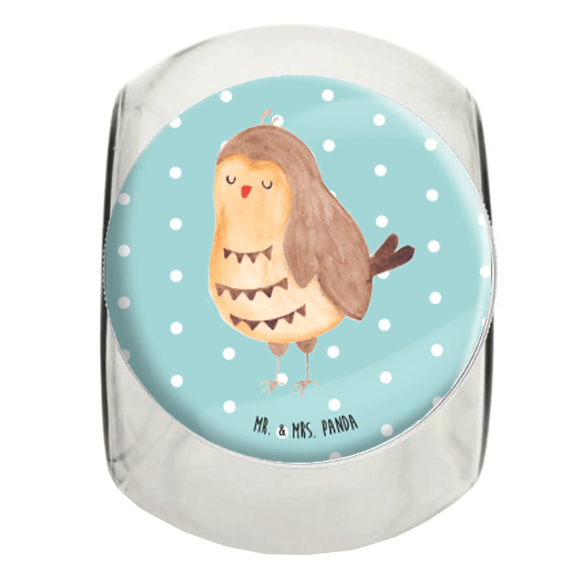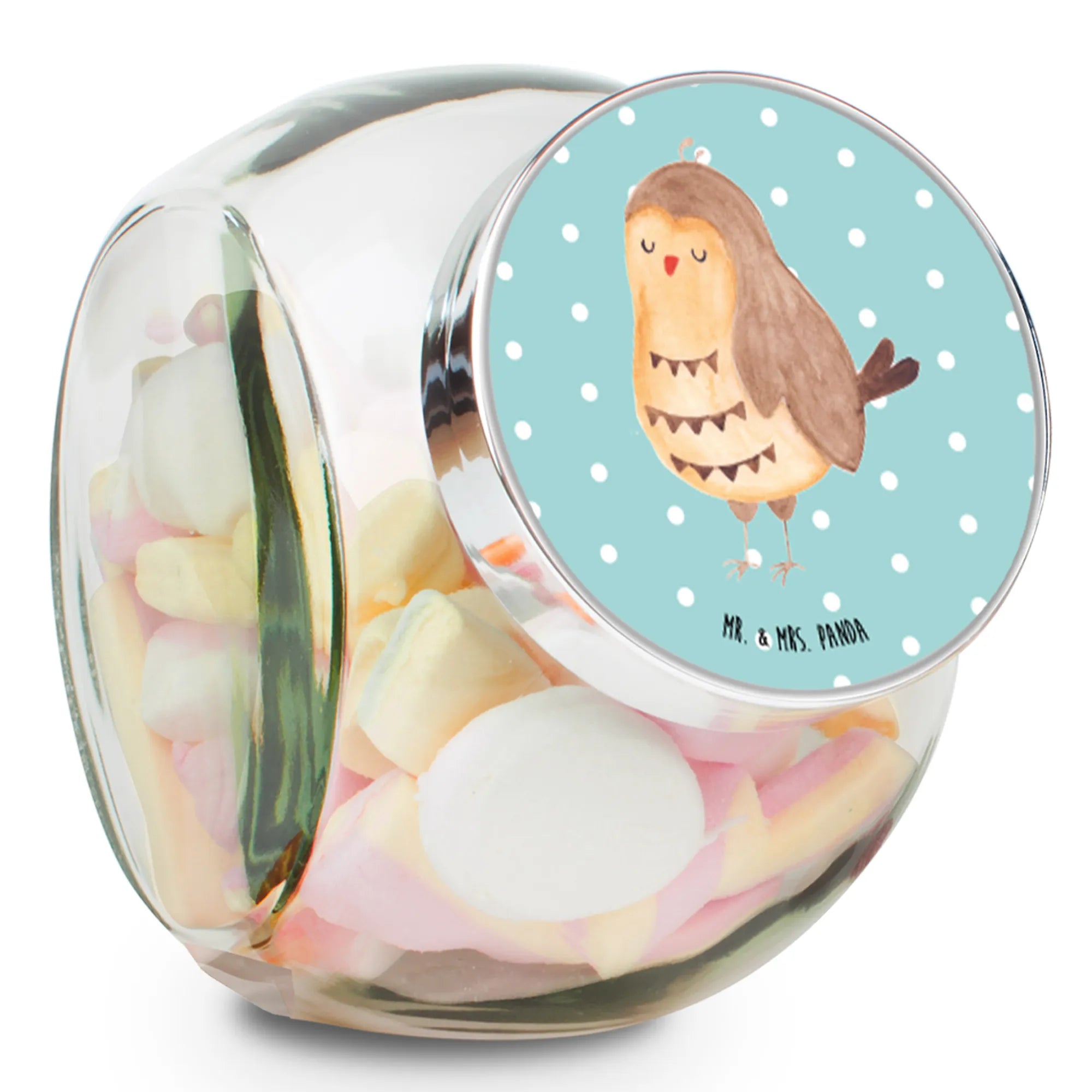 Das Bonbonglas "Eule Zufrieden" von Mr. & Mrs. Panda ist das perfekte Geschenk für alle Eulenliebhaber! Mit seinem charmanten Motiv strahlt es einen Hauch von Gemütlichkeit und Freude aus, ideal für jede Küche oder jedes Zuhause.