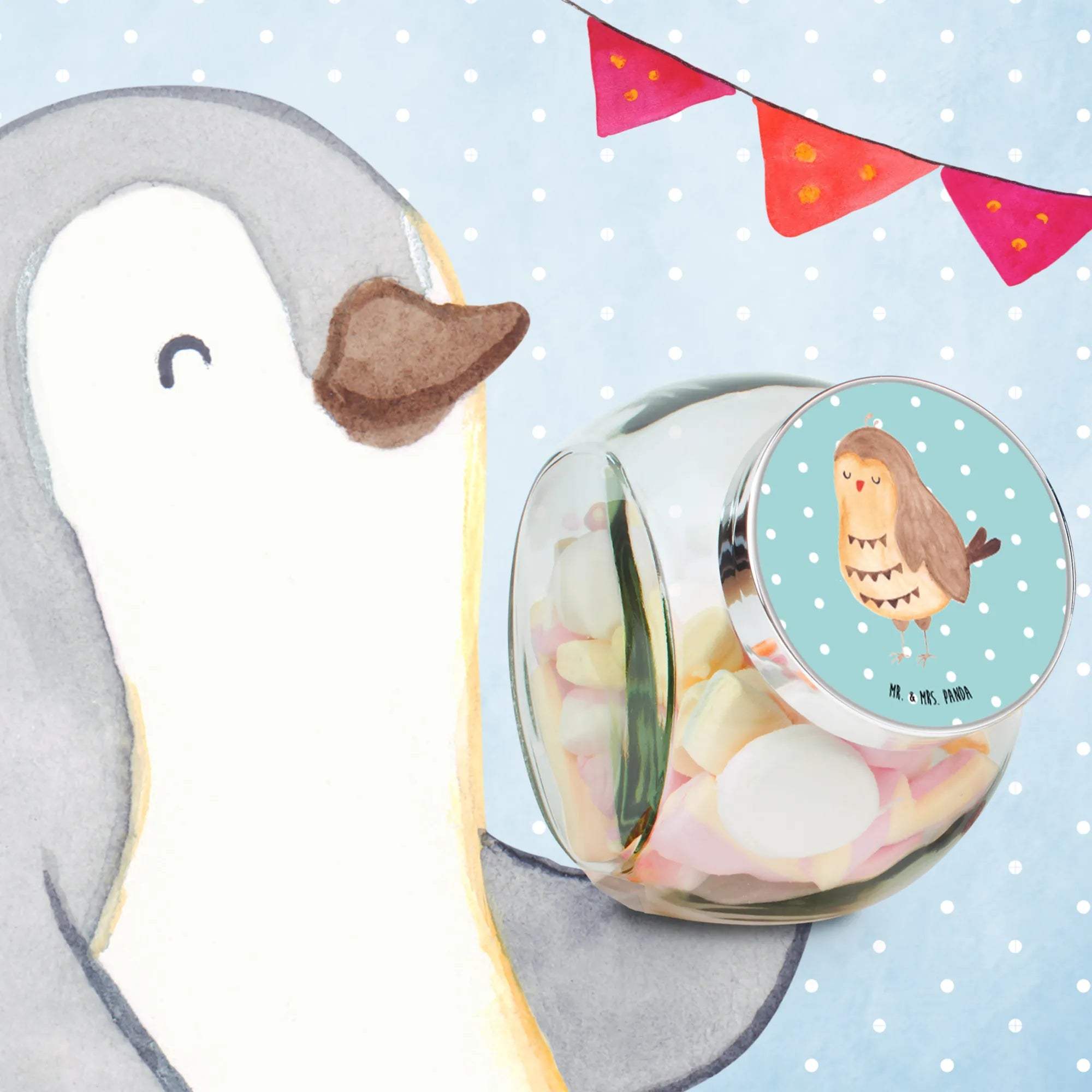 Die Kollektion „Eulen“ von Mr. & Mrs. Panda ist perfekt für alle, die Eulen lieben und ihre Wohnung mit niedlichen Dekorationen verschönern möchten. Die Kombination von Funktionalität, Design und einem liebevollen Motiv macht dieses Bonbonglas zu einem absoluten Must-Have in jeder Küche!