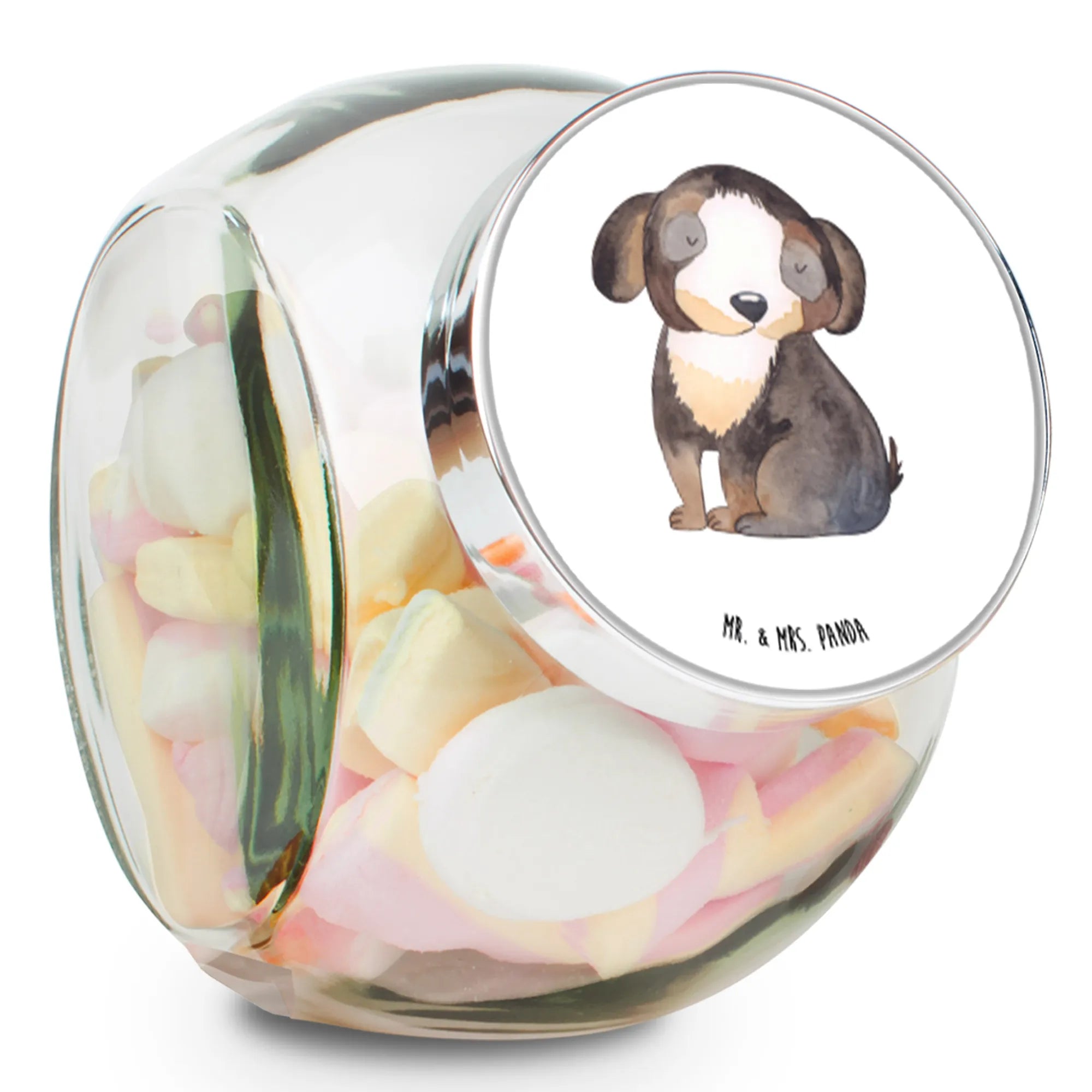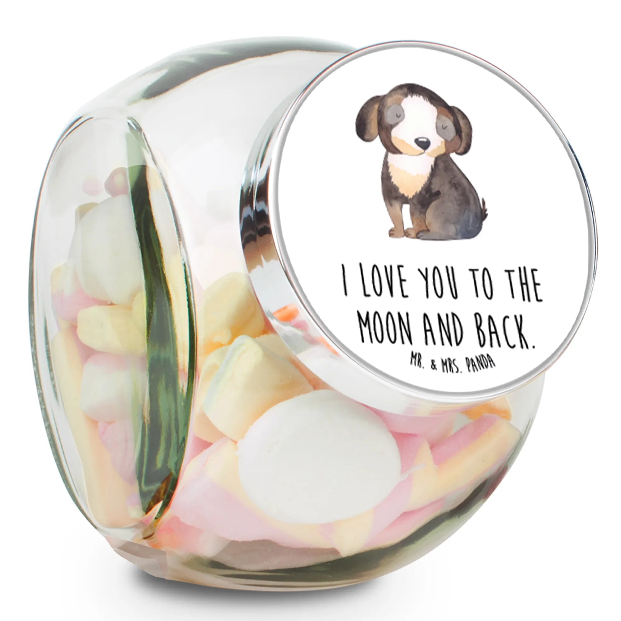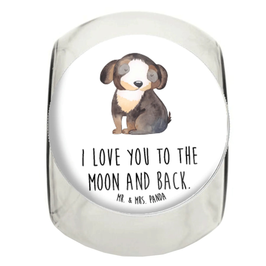 Das wunderschöne Bonbonglas mit dem Motiv "Hund entspannt" aus der Hunde Kollektion von Mr. & Mrs. Panda ist das perfekte Geschenk für alle Tierliebhaber und Hundebesitzer!