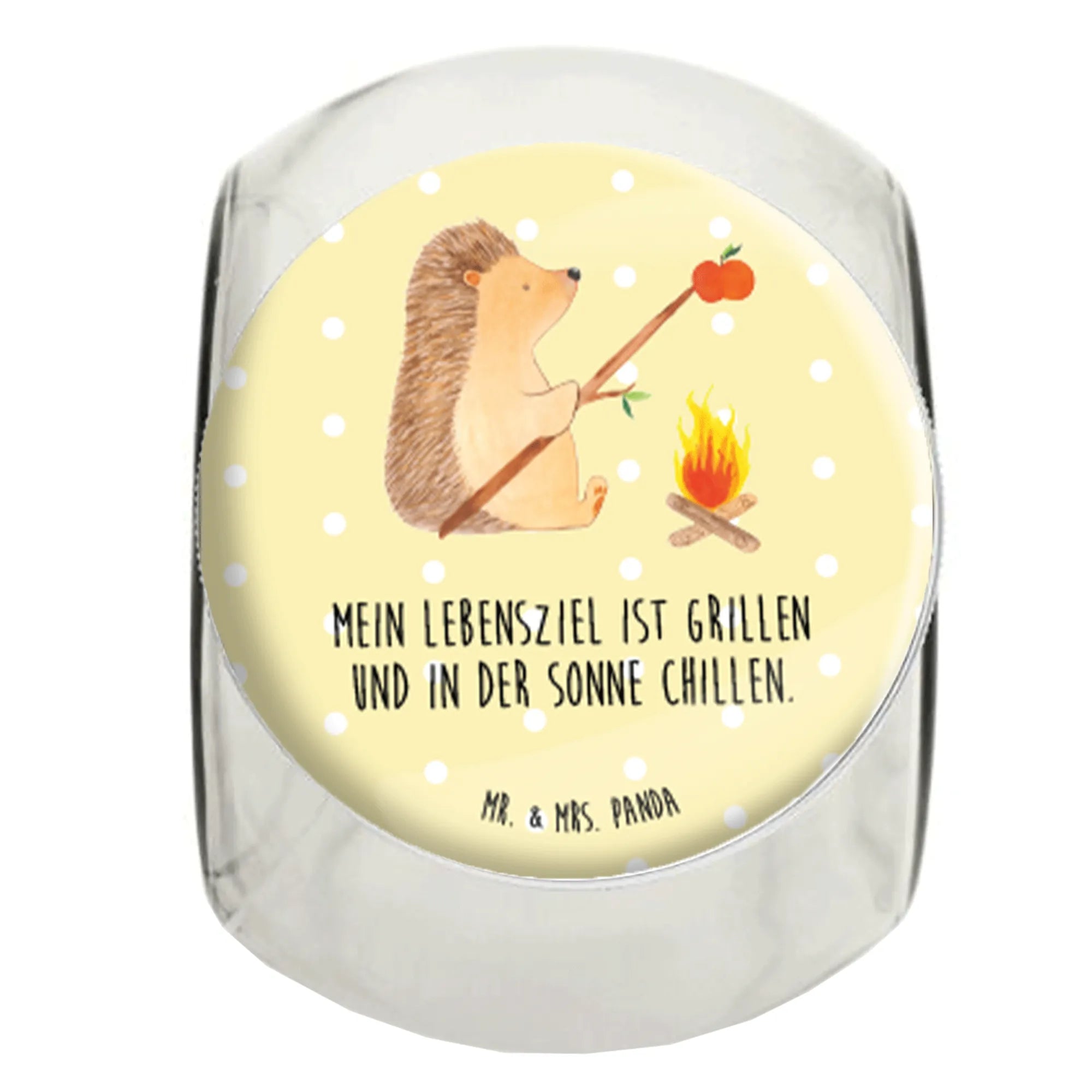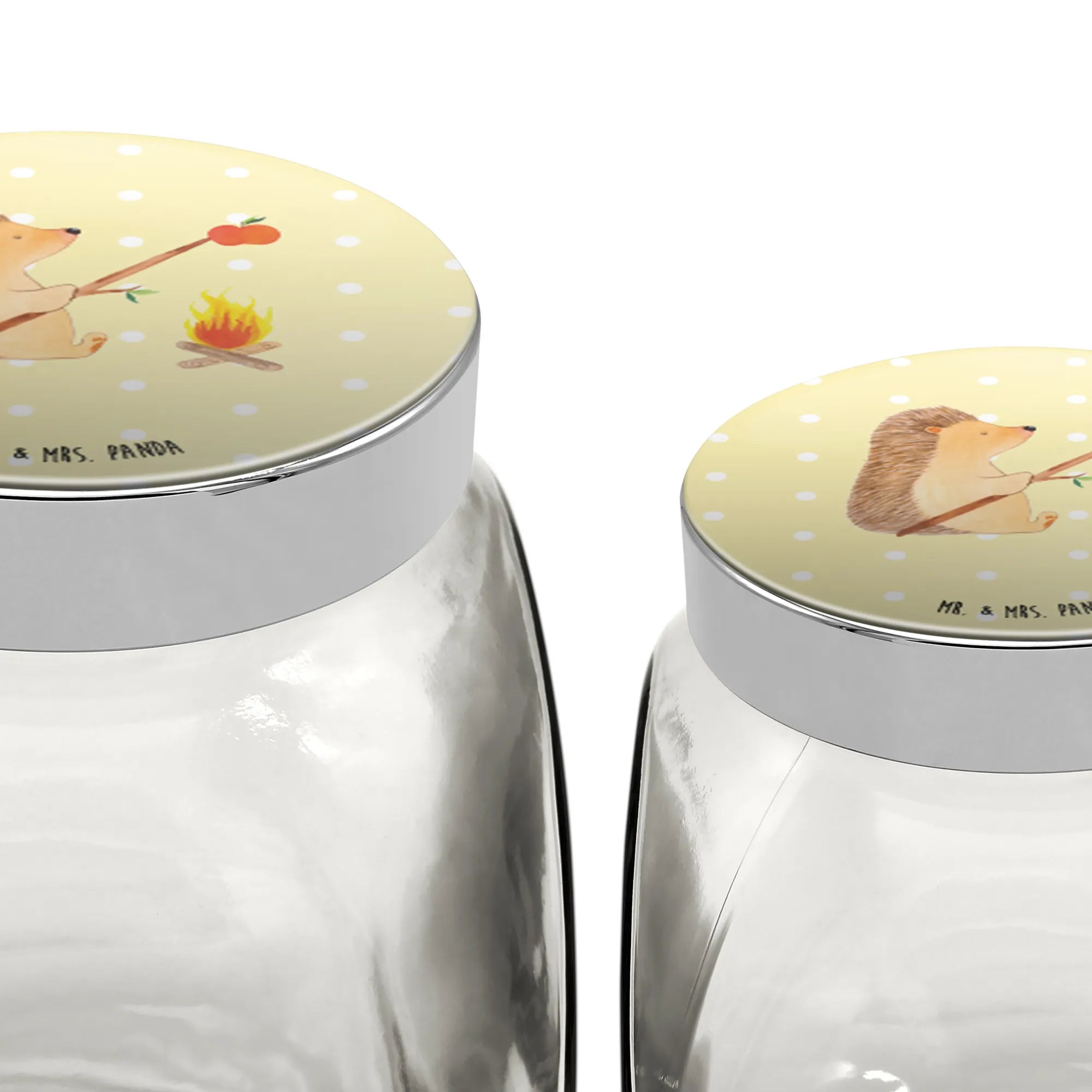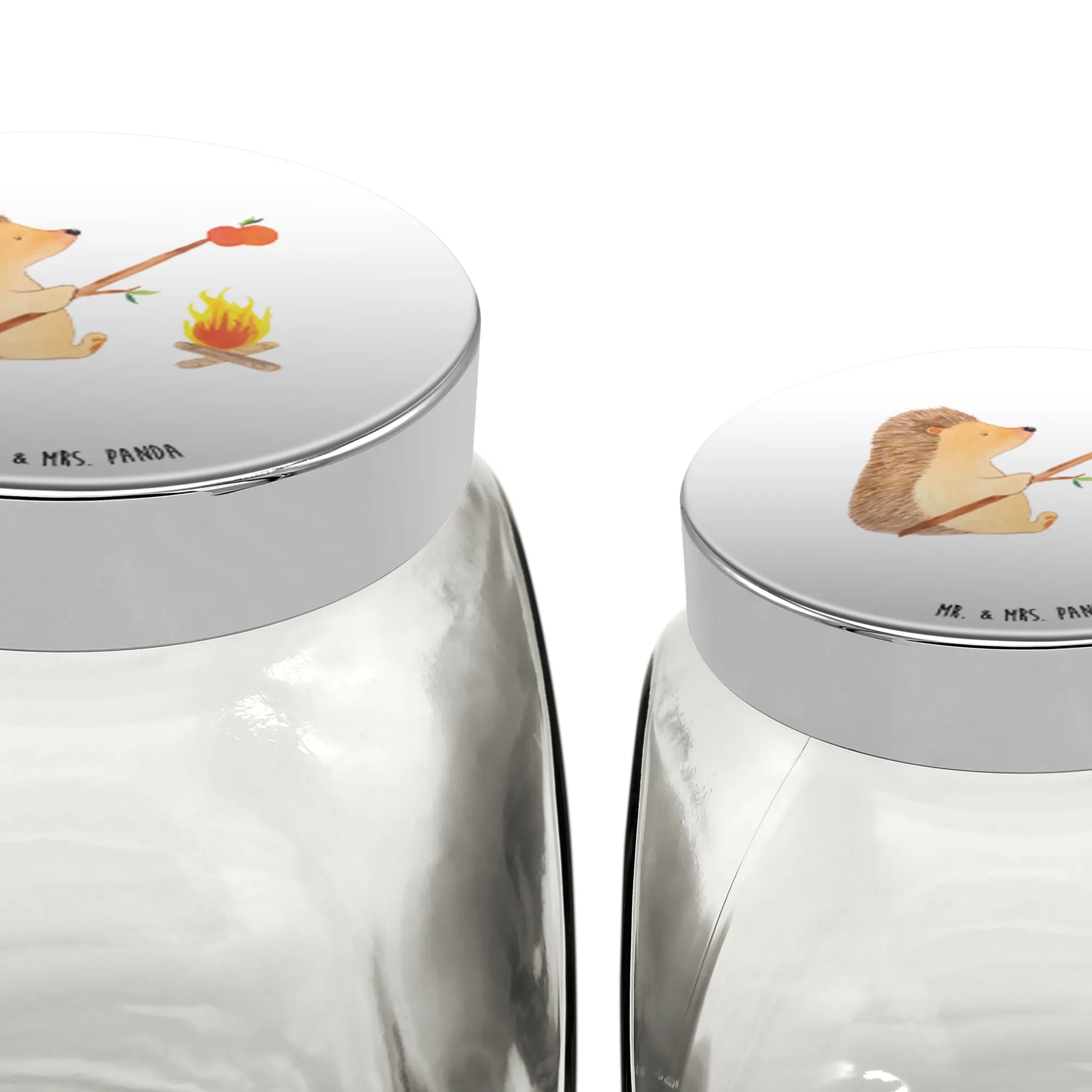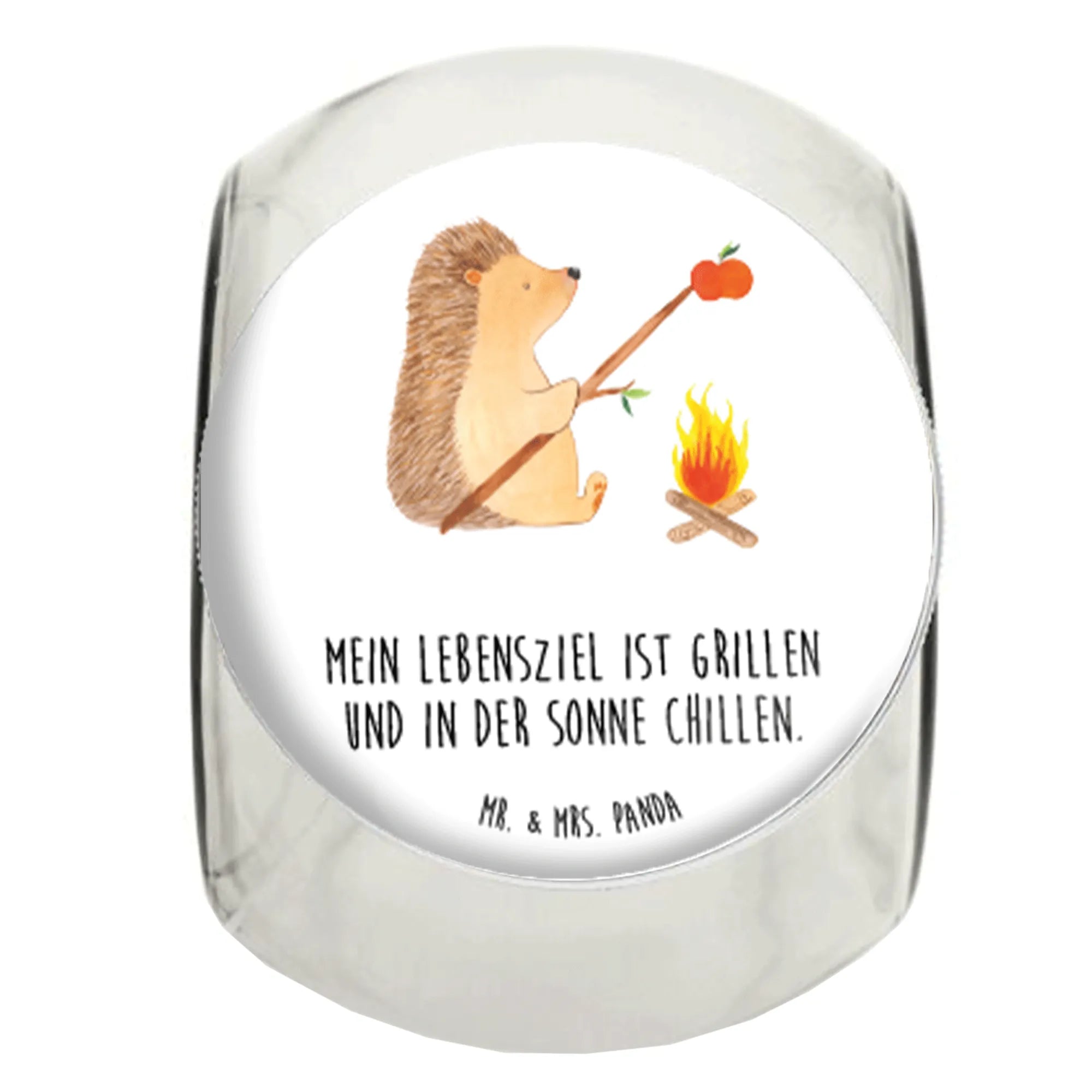 Das wunderschöne Bonbonglas mit dem Motiv 'Igel grillt' von Mr. & Mrs. Panda ist der perfekte Begleiter für dein Zuhause. Wer liebt es nicht, sich beim Grillen von Freunden und der Familie inspirieren zu lassen? Der niedliche Igel, der mit einem zufriedenen Lächeln einen Apfel über dem offenen Feuer grillt, bringt gute Laune in jede Küche.