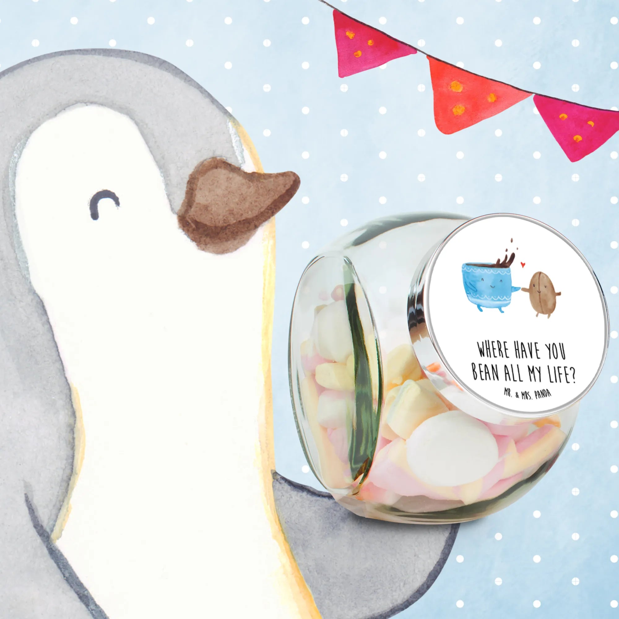 Das wunderschöne Bonbonglas von Mr. & Mrs. Panda mit dem niedlichen Motiv der Kaffeebohne ist das perfekte Geschenk für alle Kaffeeliebhaber und Süßigkeiten-Fans! Dieses Glas vereint Funktionalität und stilvolles Design und sorgt dafür, dass deine süßen Schätze immer frisch bleiben. Egal ob du Bonbons, Kekse, Müsli, Tee oder Gewürze aufbewahren möchtest, mit dem Bonbonglas hast du die ideale Aufbewahrungslösung. Das liebevoll gestaltete Motiv, auf dem eine fröhliche Kaffeetasse mit strahlenden Augen eine kleine Kaffeebohne in der Hand hält, bringt garantiert gute Laune in deine Küche. Mit einem Volumen von 2000 ml bietet es ausreichend Platz für all deine Leckereien.