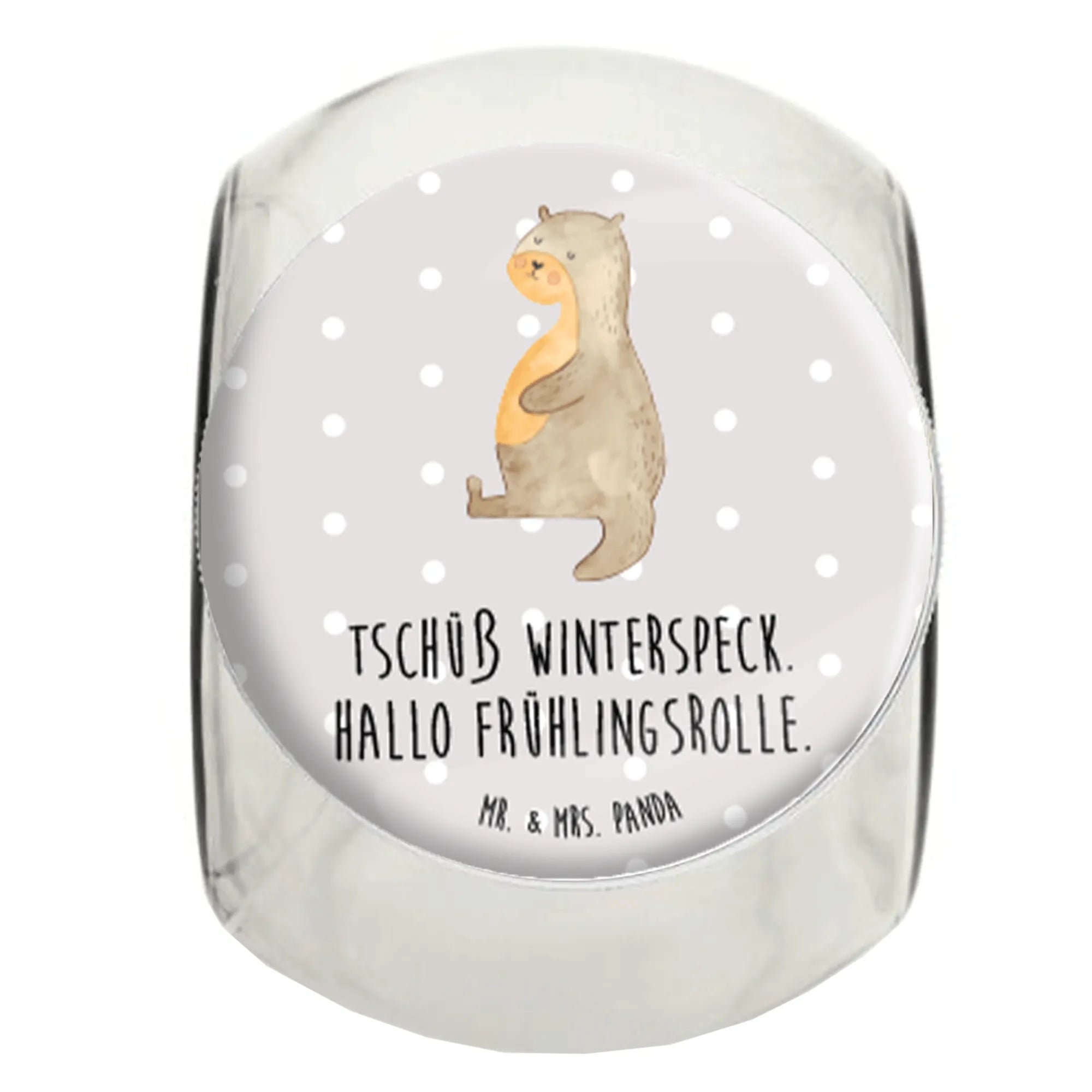 Mit seinem niedlichen Motiv eines zufriedenen Otters und dem witzigen Spruch "Tschüß Winterspeck. Hallo Frühlingsrolle!" zaubert es nicht nur ein Lächeln ins Gesicht, sondern bietet auch einen praktischen Nutzen in der Küche. Dieses Bonbonglas ist multifunktional und ideal für die Aufbewahrung von Süßigkeiten, Keksen, Kaffee, Tee, Müslis, Gewürzen und mehr.