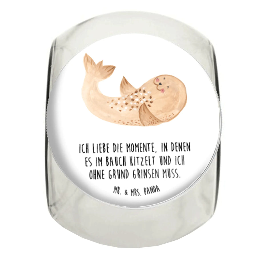 Entdecke das wunderschöne Bonbonglas mit dem süßen Motiv der liegenden Robbe aus der Small World Kollektion von Mr. & Mrs. Panda!