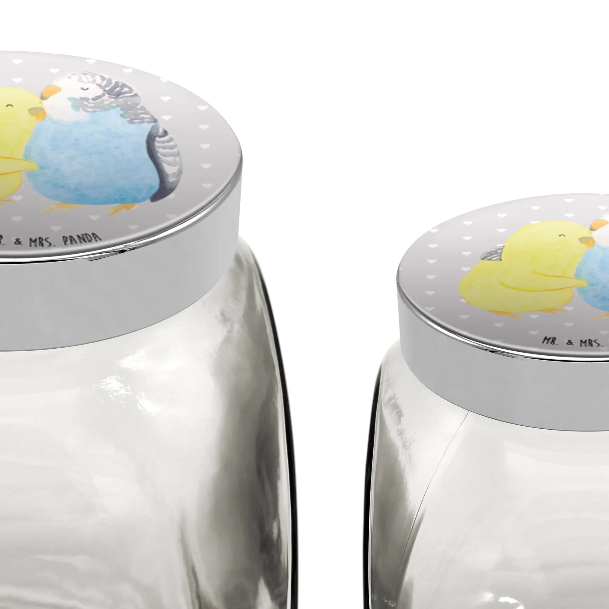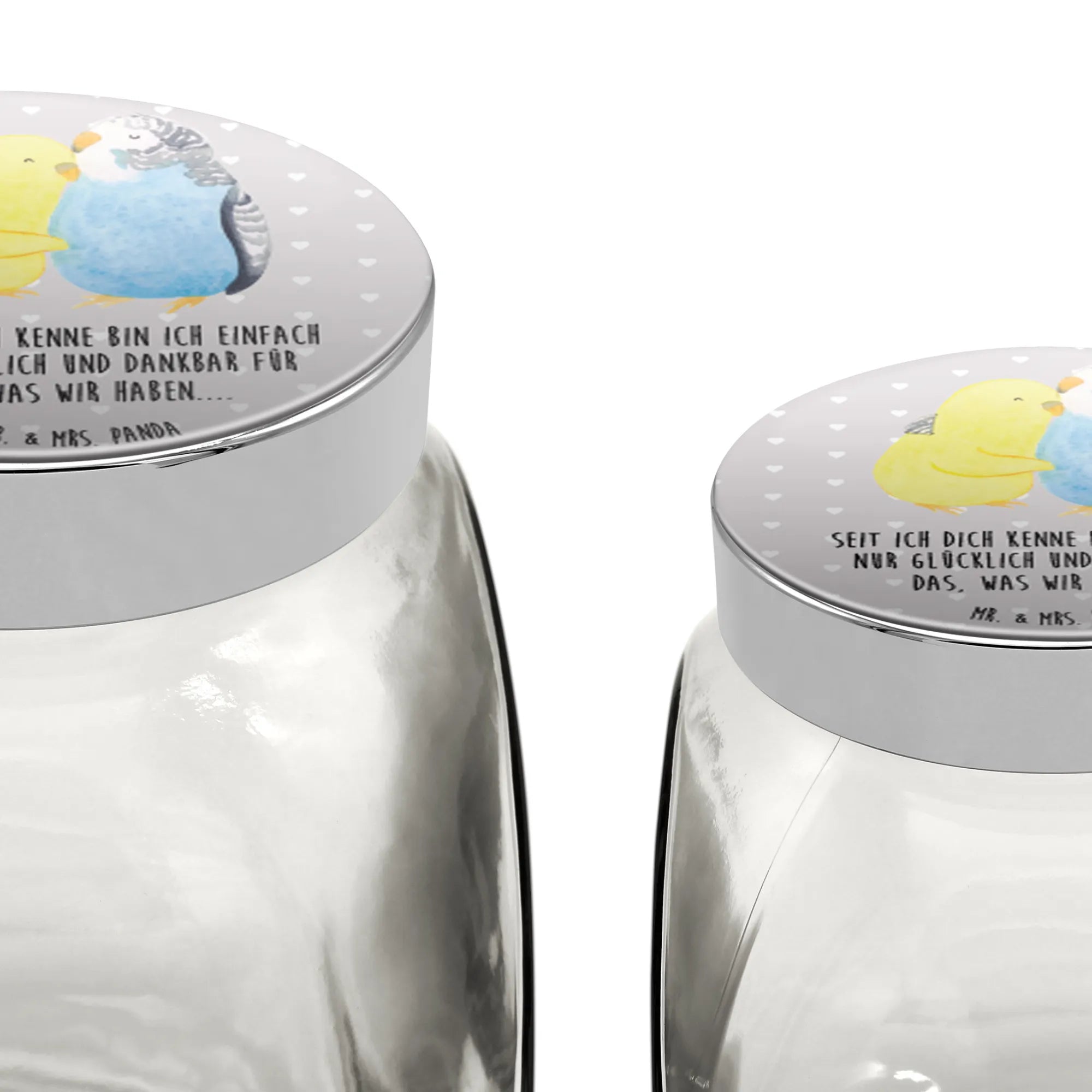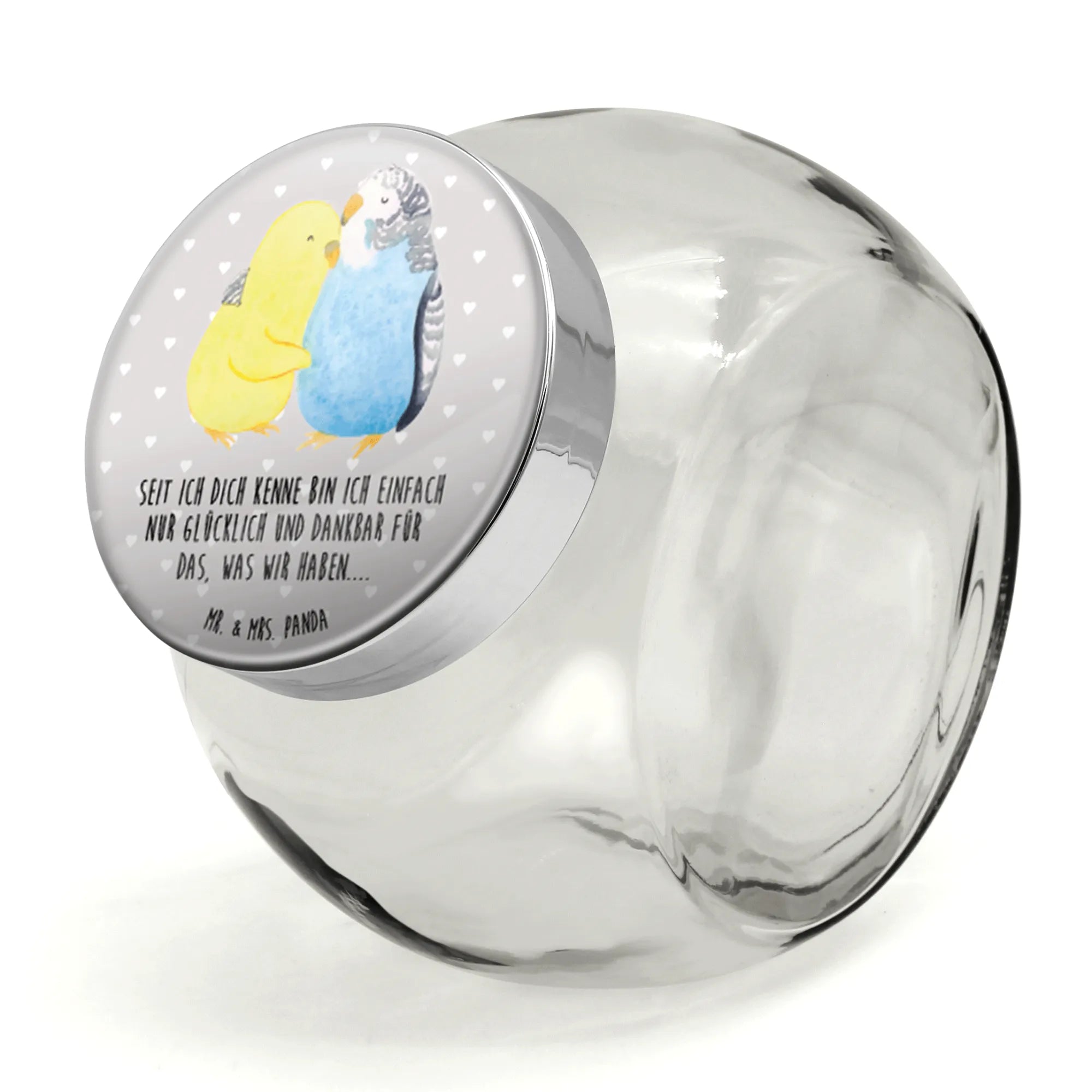 Bonbonglas Wellensittich Liebe - XL 2000ml - mit Spruch - Grau Pastell