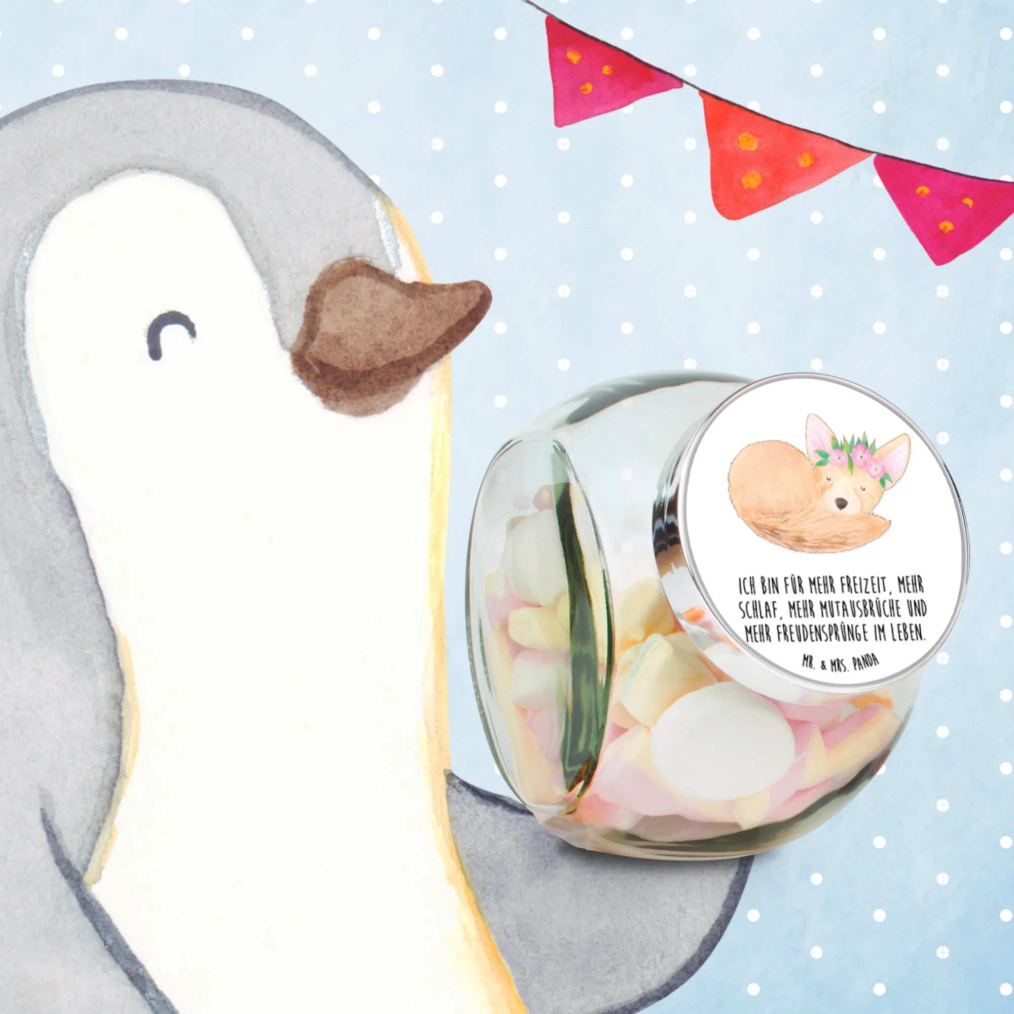 Das wunderschöne Bonbonglas mit dem zauberhaften Motiv Wüstenfuchs Blumenkranz von Mr. & Mrs. Panda ist das perfekte Geschenk für alle, die die Schönheit Afrikas und die Freude an kleinen Dingen im Leben schätzen.