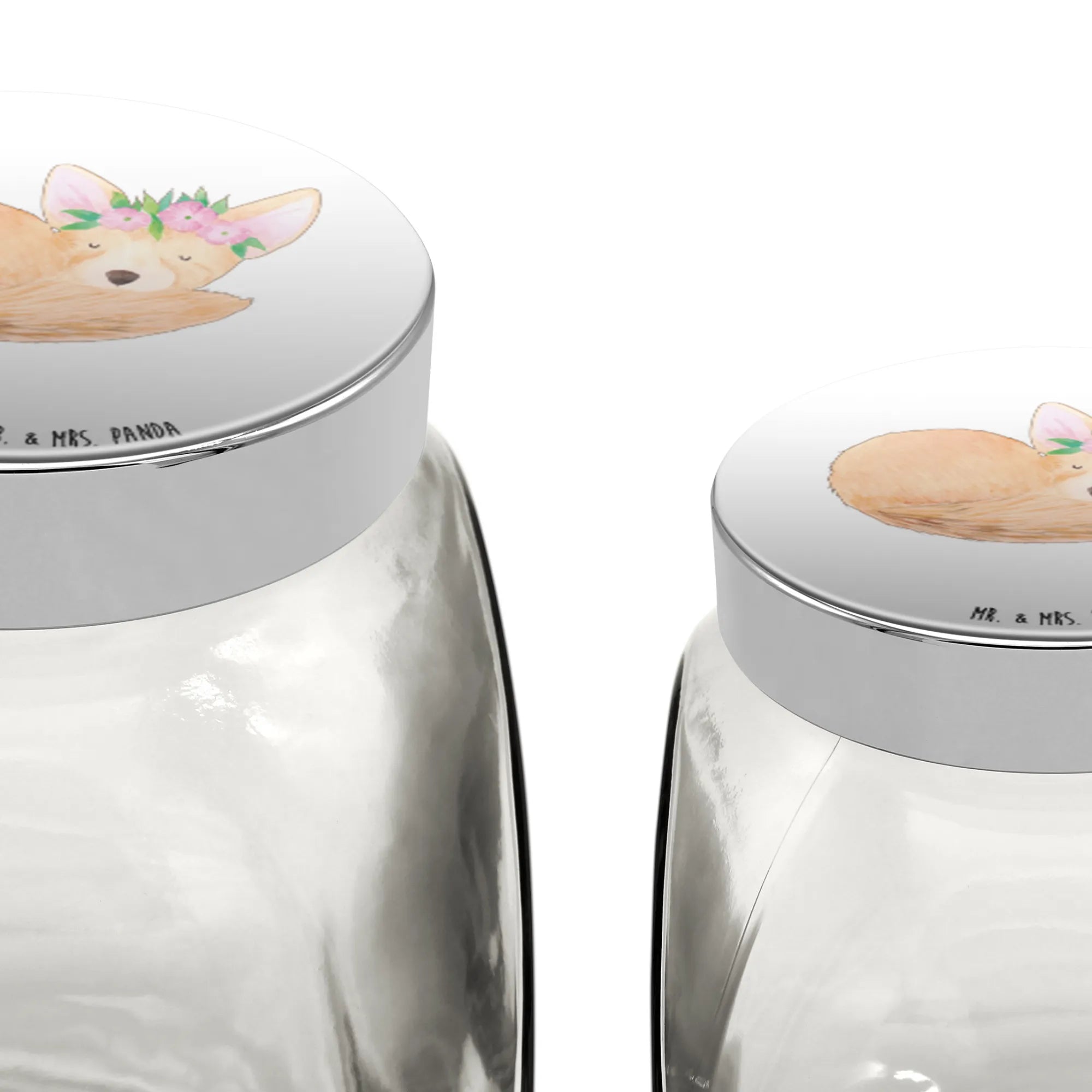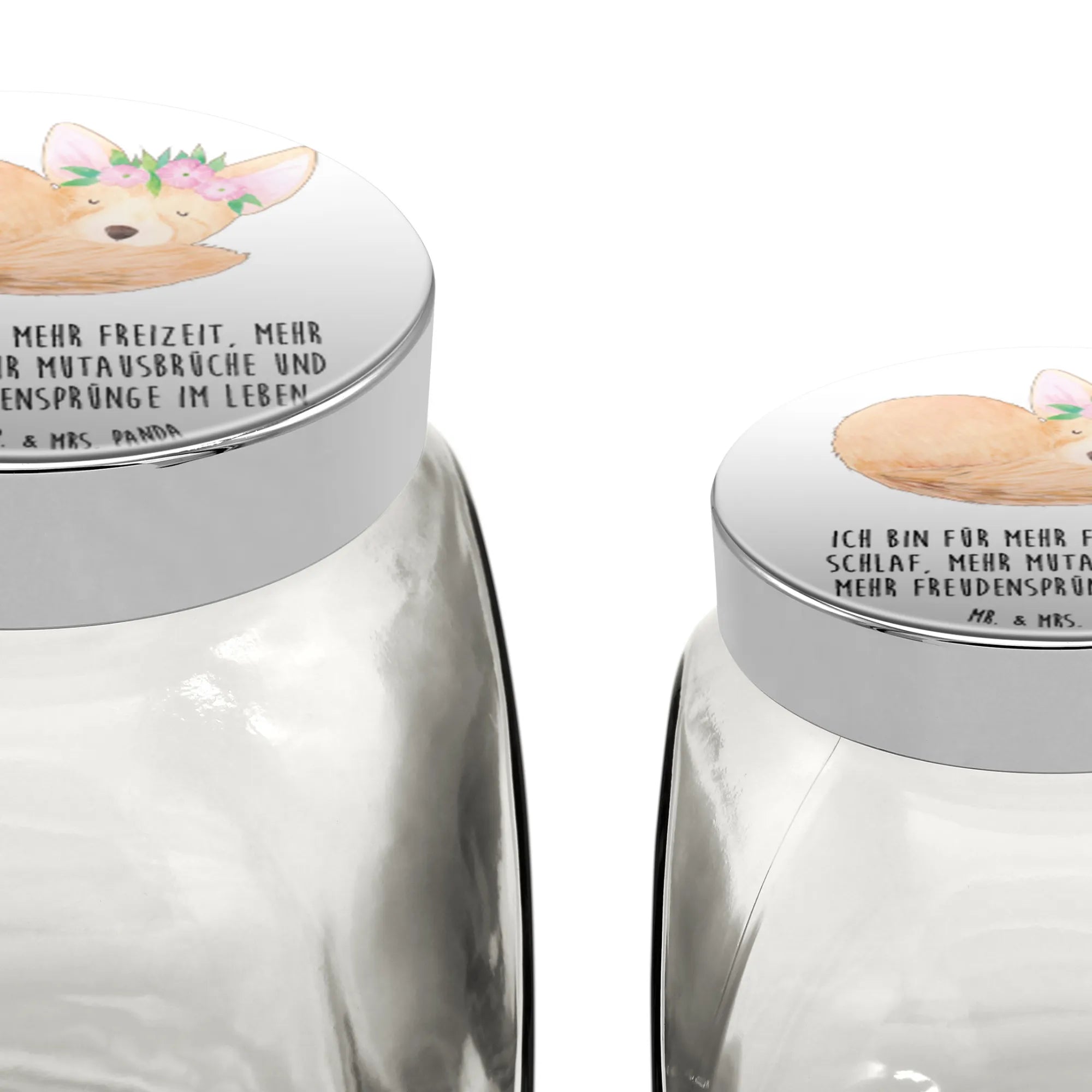 Das Wunderschöne Bonbonglas von Mr. & Mrs. Panda mit dem bezaubernden Motiv des Wüstenfuchses im Blumenkranz ist das perfekte Geschenk für alle, die das Besondere lieben! Egal ob für deine beste Freundin, dein Lieblingspaar oder als Hingucker in der eigenen Küche – dieses Vorratsglas wird einfach überall zum Star!