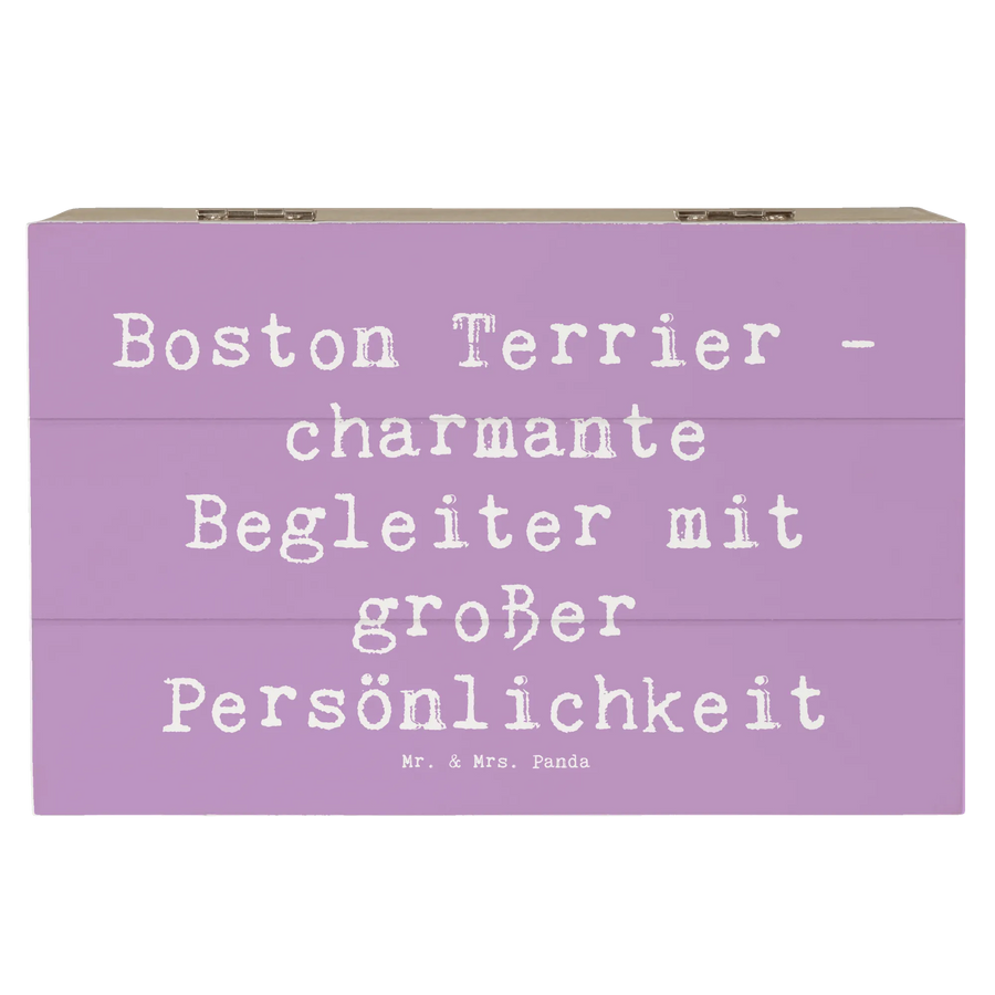 Die wunderschöne Holzkiste von Mr. & Mrs. Panda mit dem Motiv "Boston Terrier - charmante Begleiter mit großer Persönlichkeit" ist das perfekte Geschenk für alle Hundefans! Diese dekorative Kiste ist nicht nur ein stilvoller Hingucker, sondern auch ein praktischer Aufbewahrungsort für all deine Schätze.