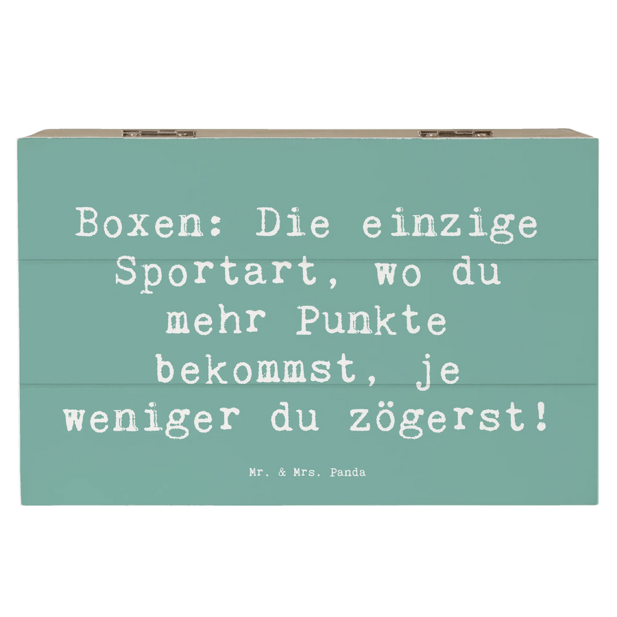 Die wunderschöne Holzkiste von Mr. & Mrs. Panda ist das perfekte Geschenk für alle Sportliebhaber! Mit dem motivierenden Spruch "Boxen: Die einzige Sportart, wo du mehr Punkte bekommst, je weniger du zögerst!" bringt diese einzigartige Erinnerungskiste nicht nur Stil, sondern auch Spaß in jedes Zuhause.