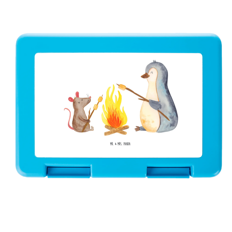 Brotdose Pinguin Lagerfeuer - ohne Spruch - Weiß