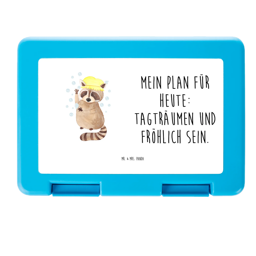 Auf sanftem Pastellgelb lacht dir ein zuckersüßer Waschbär entgegen, der sich unter der Dusche vergnügt und Seifenblasen pustet. Dazu der herrliche Spruch „Mein Plan für heute: Tagträumen und fröhlich sein.“ – perfekt, um morgens gute Laune zu verbreiten. Diese Brotdose ist ideal als Schulbrotdose, Lunchbox oder Snackdose und bringt ein Lächeln in jede Pause.