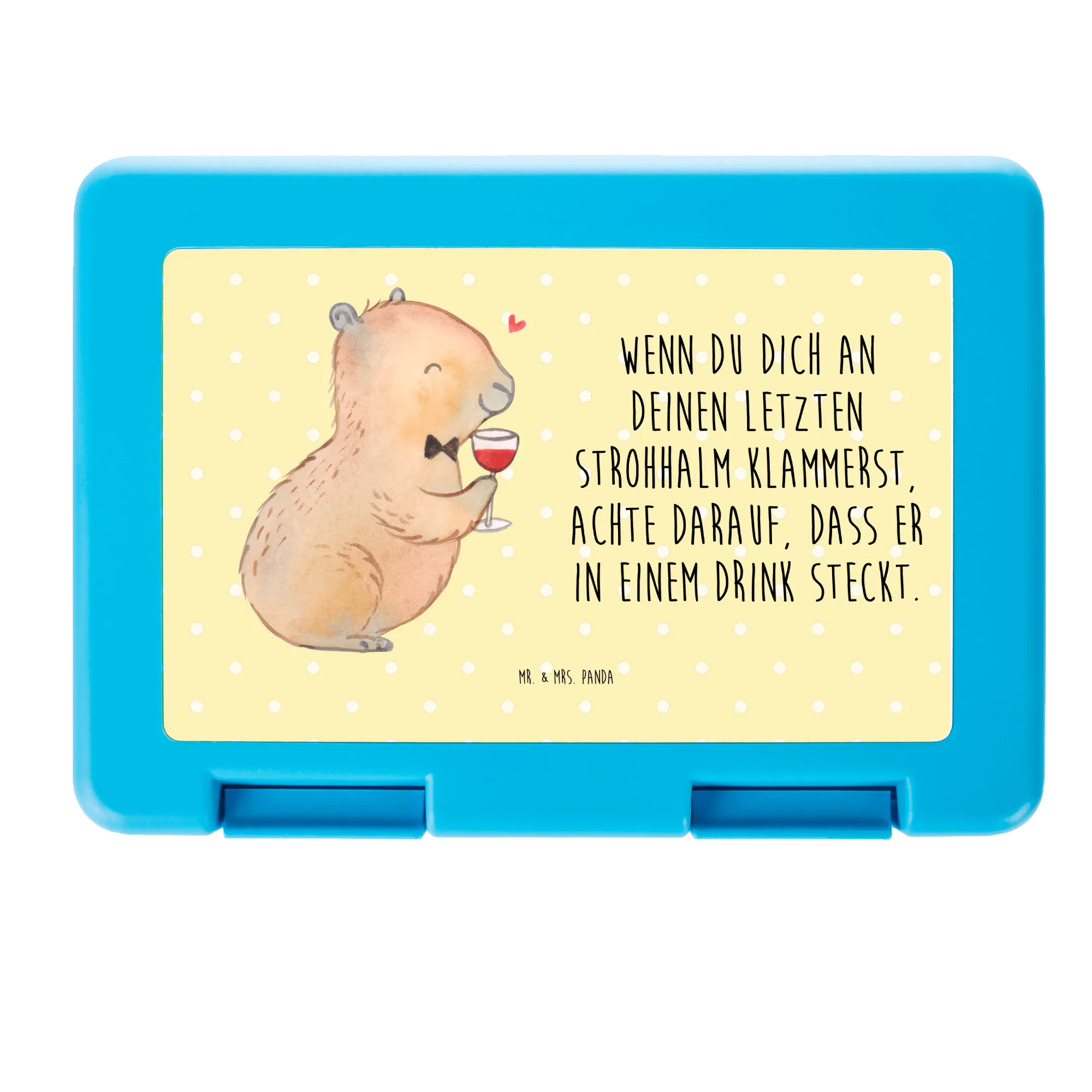 Entdecke die bezaubernde Brotdose Capybara Wein aus der Collection Small World von Mr. & Mrs. Panda! Diese wunderschöne Brotdose ist nicht nur praktisch, sondern auch ein echter Hingucker. Mit einem liebevoll handgezeichneten Capybara, das mit einem Glas Wein in der Pfote genießt, wird jede Pause zum Highlight des Tages. Der charmante Slogan „Wenn du dich an deinen letzten Strohhalm klammerst, achte darauf, dass er in einem Drink steckt.“ sorgt für Schmunzler und gute Laune!