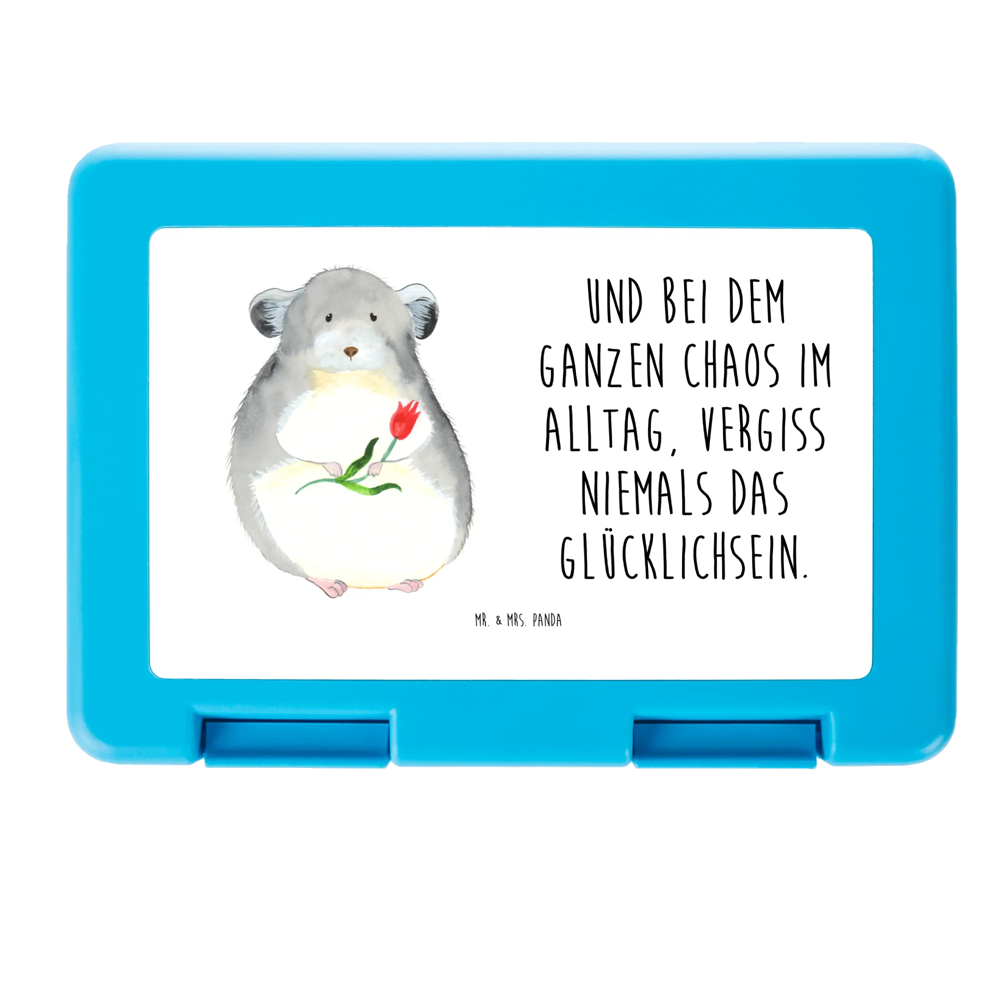 Unsere wunderschöne Brotdose "Chinchilla mit Blume" aus der Small World Kollektion von Mr. & Mrs. Panda ist mehr als nur ein praktisches Utensil – sie ist ein kleiner Freude-Bringer für den Alltag! Wenn Du ein Tierfreund bist oder jemanden kennst, der es ist, dann ist diese Brotdose das perfekte Geschenk. Jedes Mal, wenn Du die Brotdose öffnest, wirst Du von dem niedlichen Chinchilla begrüßt, das mit großen Augen und einem Blumenstrauß in der Hand auf Dich wartet. Die liebevoll handgezeichnete Illustration bringt nicht nur gute Laune in Dein Büro, sondern erinnert Dich auch daran, das Glücklichsein nicht zu vergessen, selbst wenn der Alltag hektisch wird. Mit dem Slogan „Und bei dem ganzen Chaos im Alltag, vergiss niemals das Glücklichsein.“ wird jede Pause zu einem kleinen Glücksmoment.