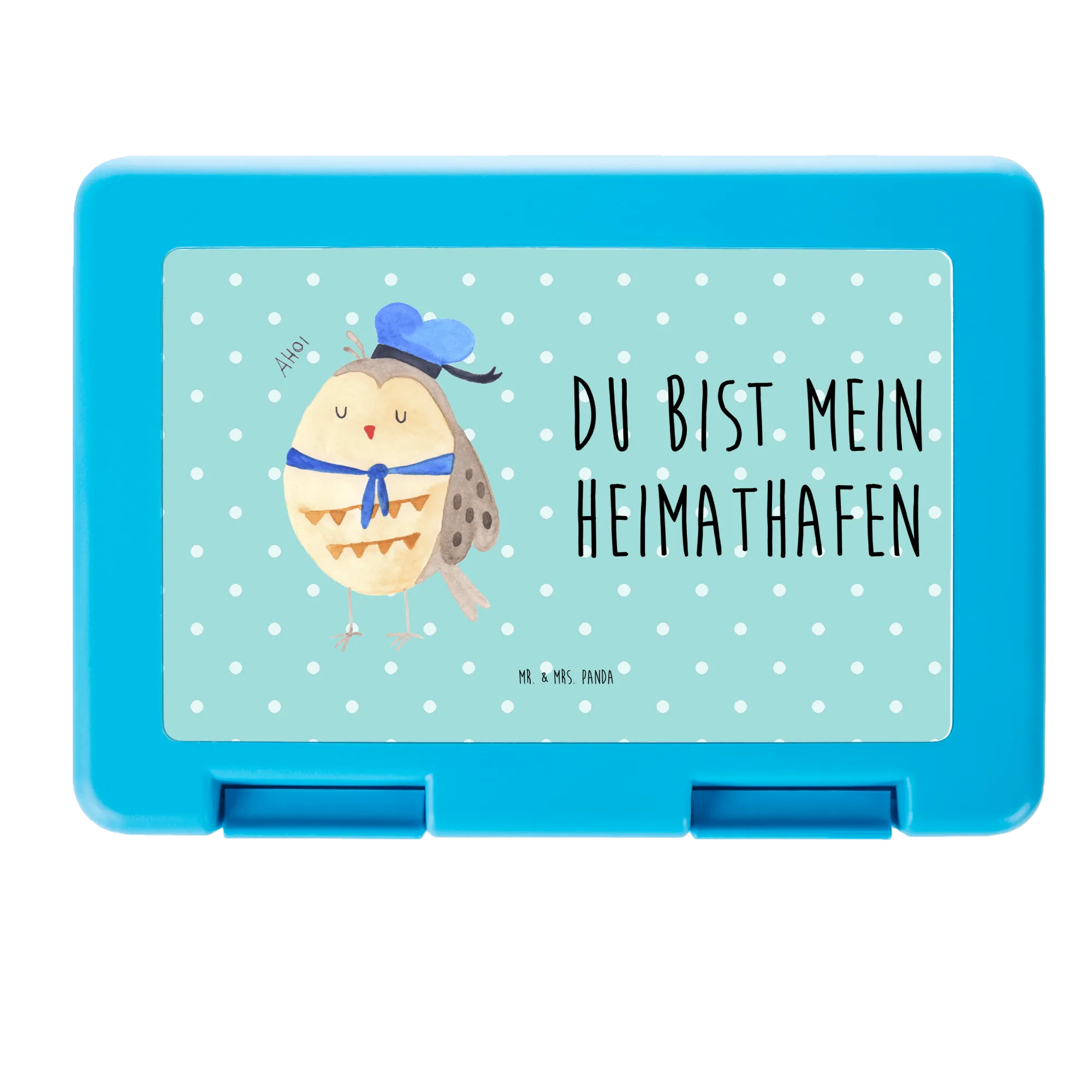 Brotdose Eule Matrose - mit Spruch - Türkis Pastell