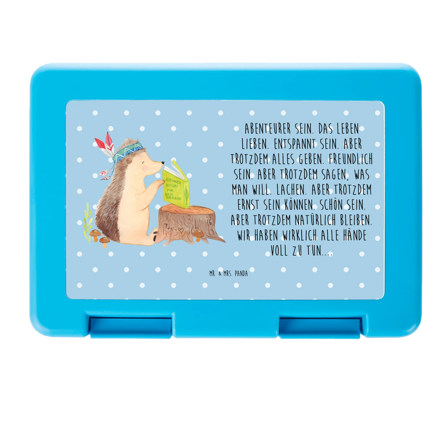 Brotdose Igel Indianer - mit Spruch - Blau Pastell
