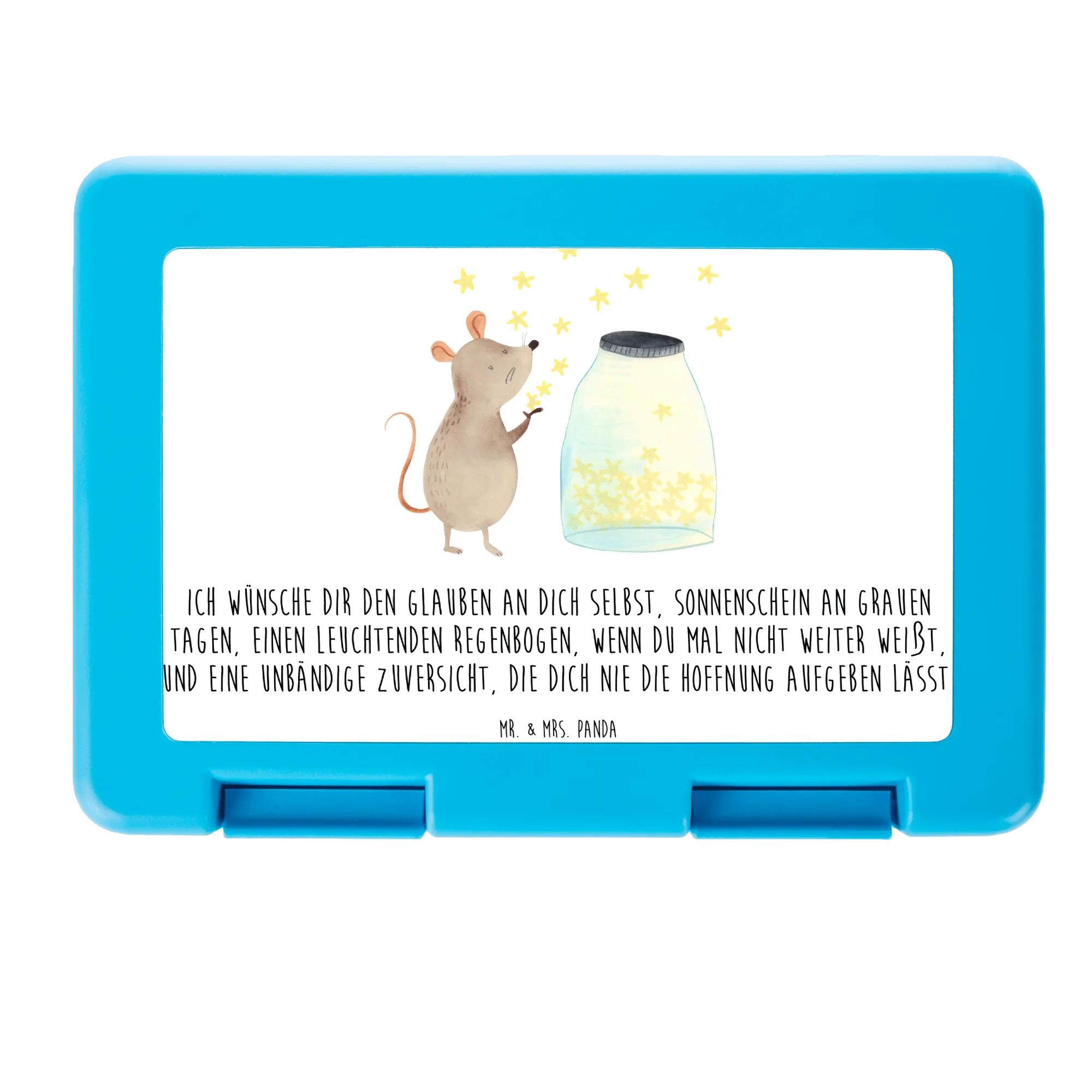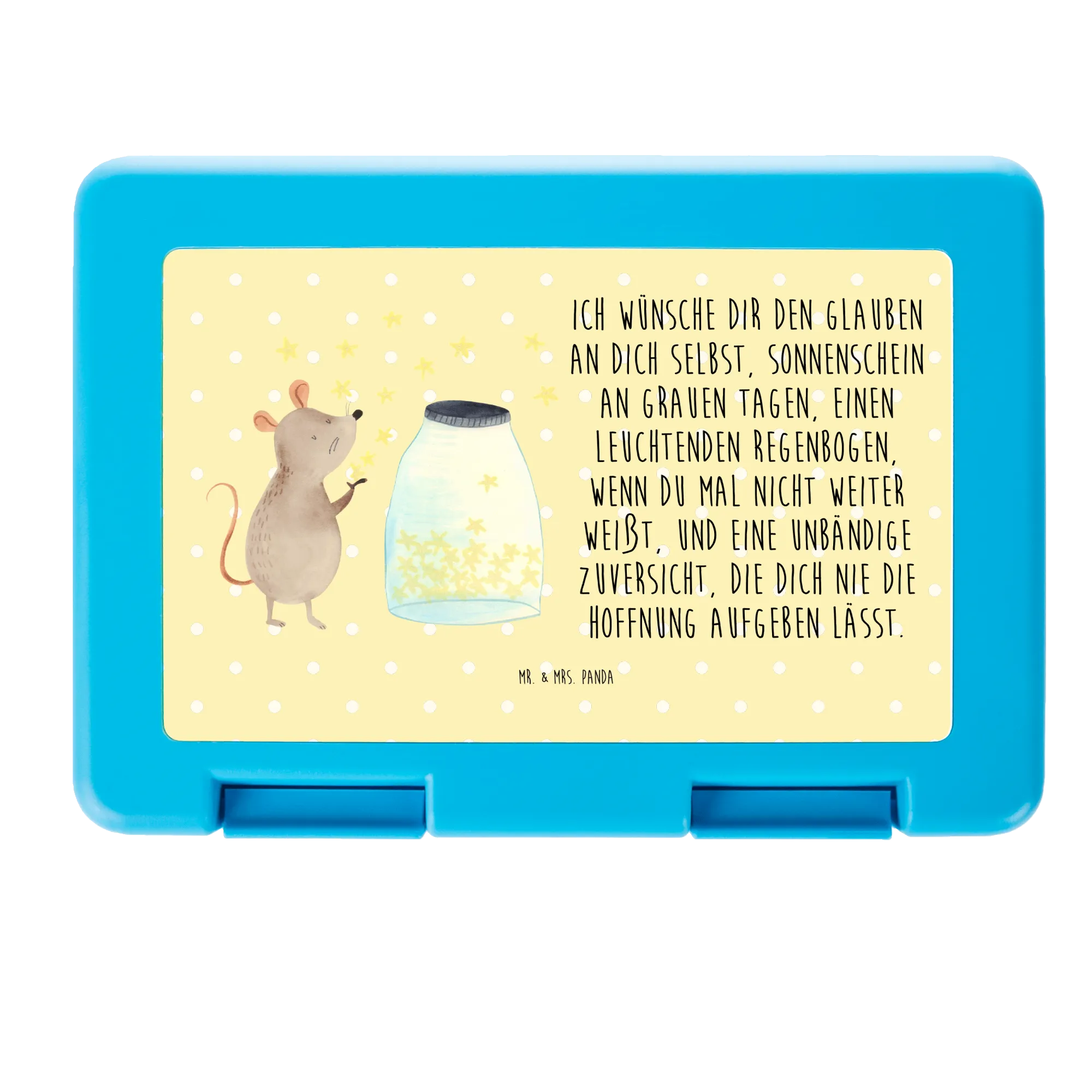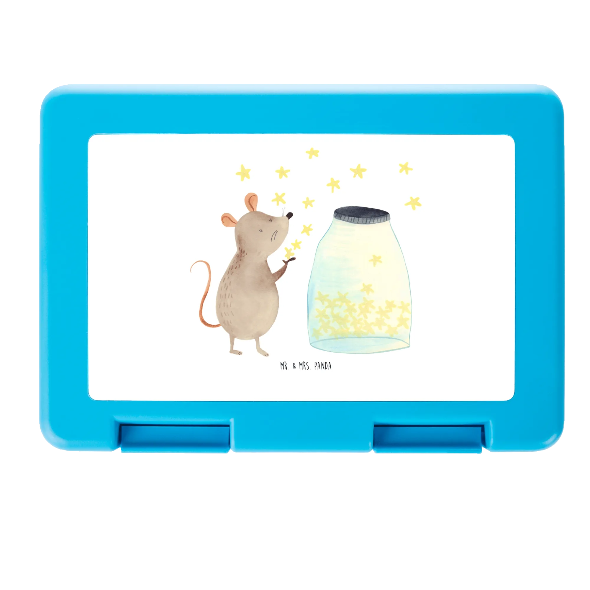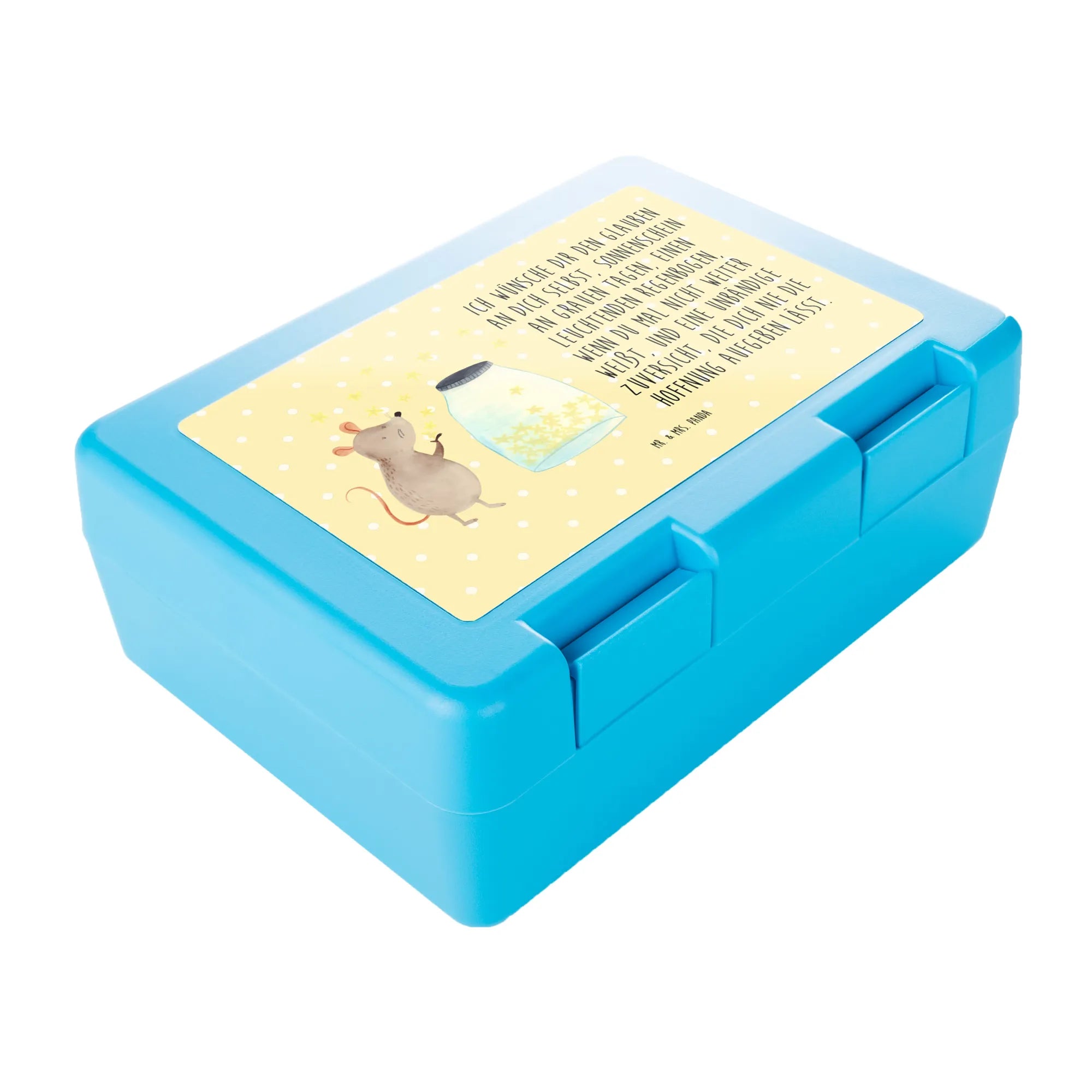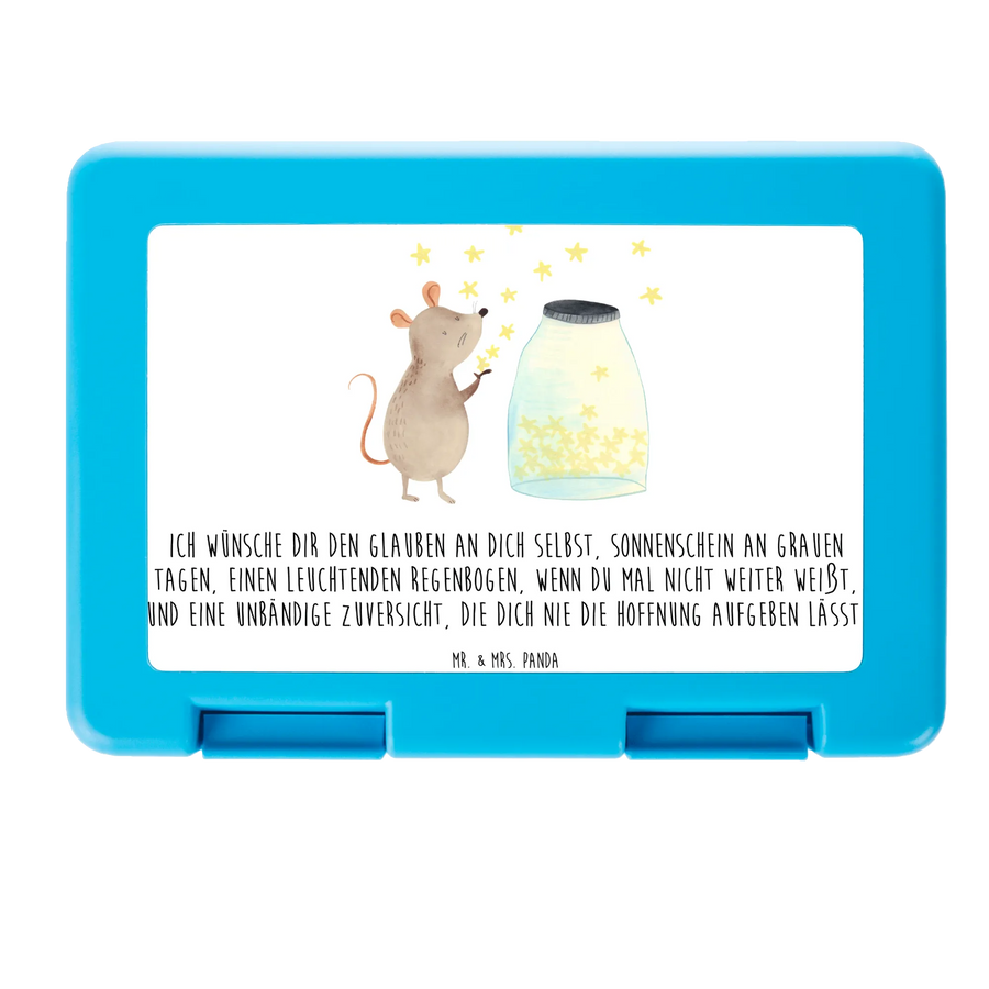 Die Brotdose "Maus Sterne" von Mr. & Mrs. Panda ist nicht nur eine praktische Butterbrotdose, sondern auch ein zauberhaftes Geschenk, das Kinderherzen höher schlagen lässt. Mit ihrem bezaubernden Motiv, das eine süße Maus vor einem Glas voller funkelnder Sterne zeigt, lädt diese Lunchbox dazu ein, mit der Fantasie auf eine Reise zu gehen. Die Maus träumt von Abenteuern und lässt die Sterne fliegen – eine Botschaft, die Hoffnung und Kreativität in den Alltag bringt!
