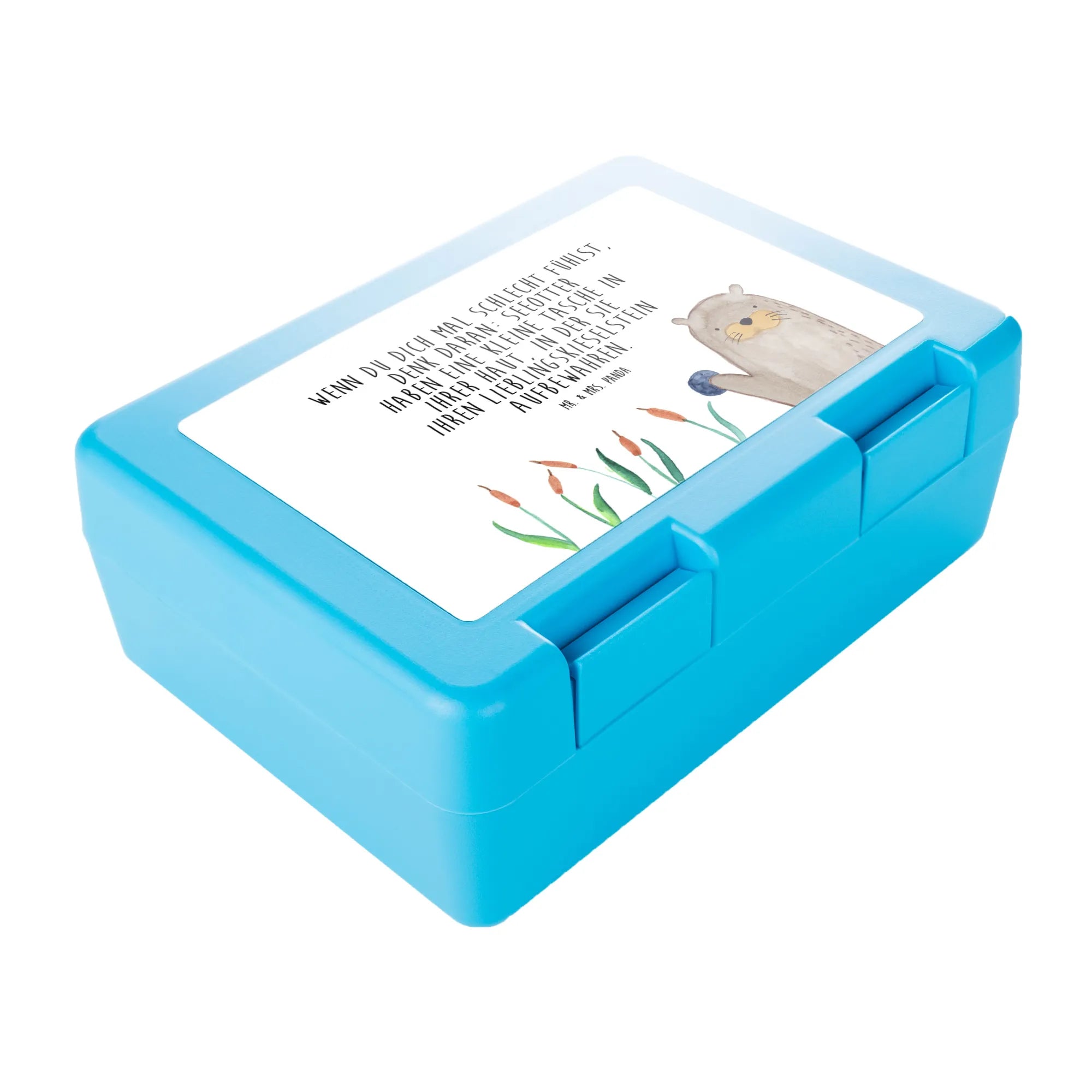 Die wundervolle Brotdose "Otter mit Stein" aus der besonderen Otter-Kollektion von Mr. & Mrs. Panda ist das perfekte Geschenk für alle, die nicht nur einen praktischen Begleiter für ihre Snacks suchen, sondern auch ein Stück Lebensfreude und Inspiration in den Alltag integrieren möchten. Mit ihrem fröhlichen Design, das einen knuffigen Otter zeigt, der stolz seinen Lieblingskieselstein in die Luft hält, wird diese Brotdose garantiert zum Blickfang in der Schule, im Büro oder beim Picknick im Park.