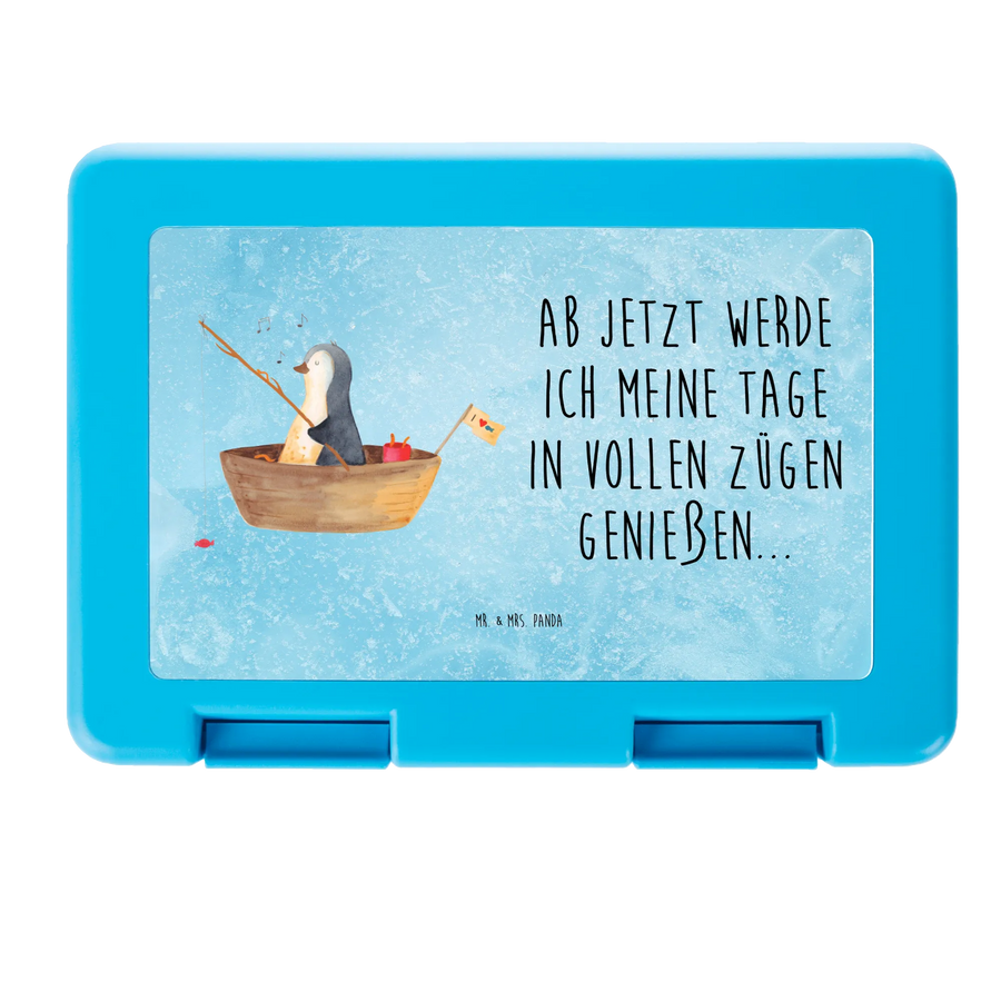 Brotdose Pinguin Angelboot - mit Spruch - Eisblau