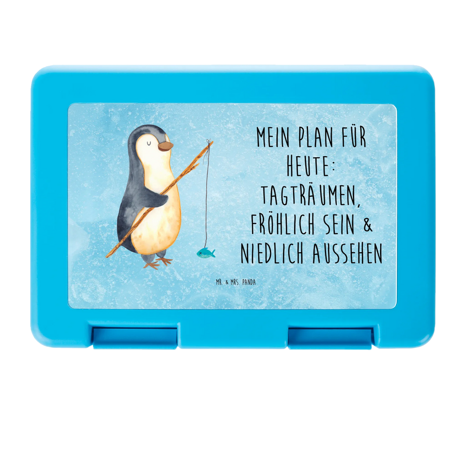 Brotdose Pinguin Angler - mit Spruch - Eisblau