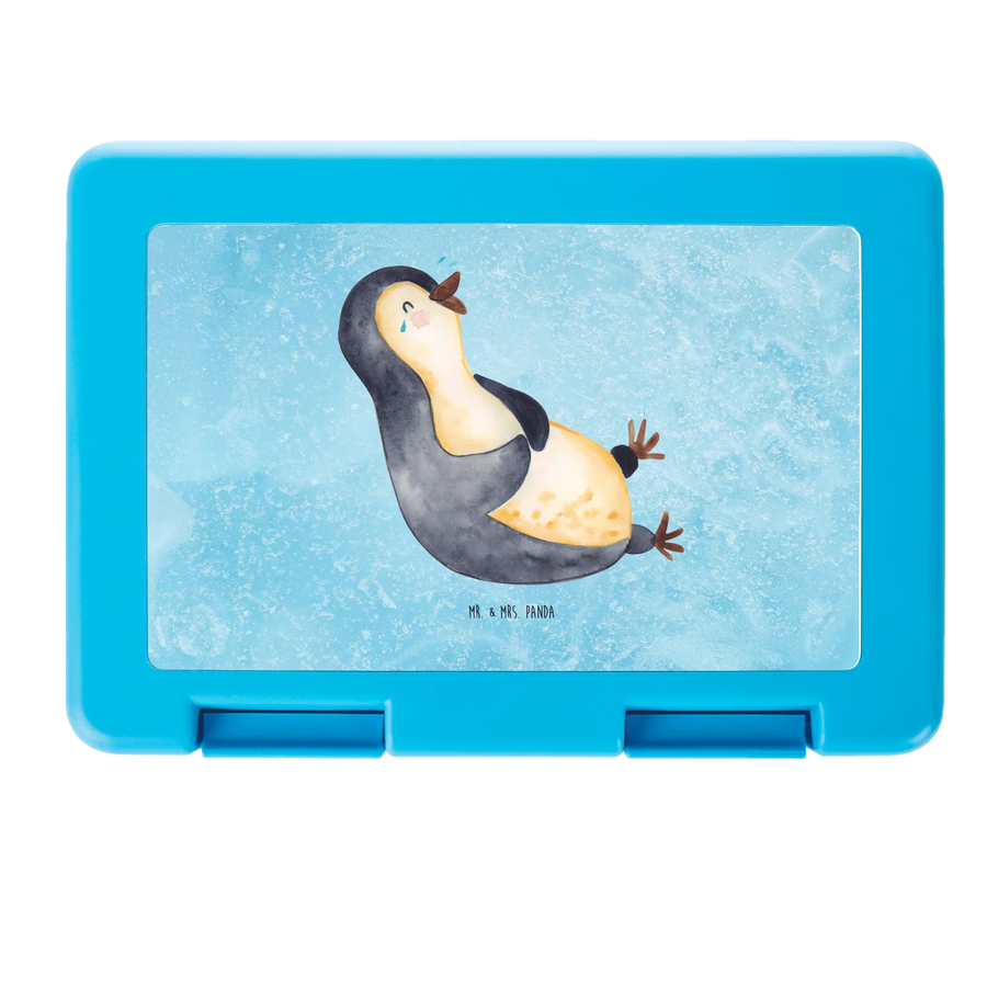 Brotdose Pinguin Lachen - ohne Spruch - Eisblau