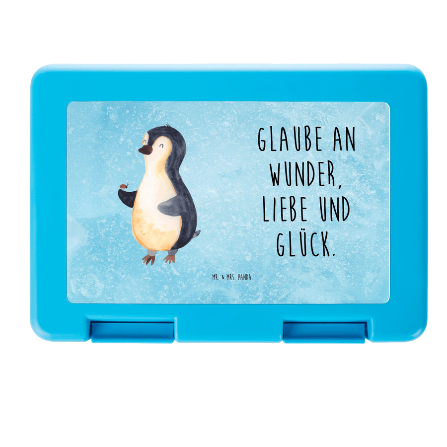 Brotdose Pinguin Marienkäfer - mit Spruch - Eisblau