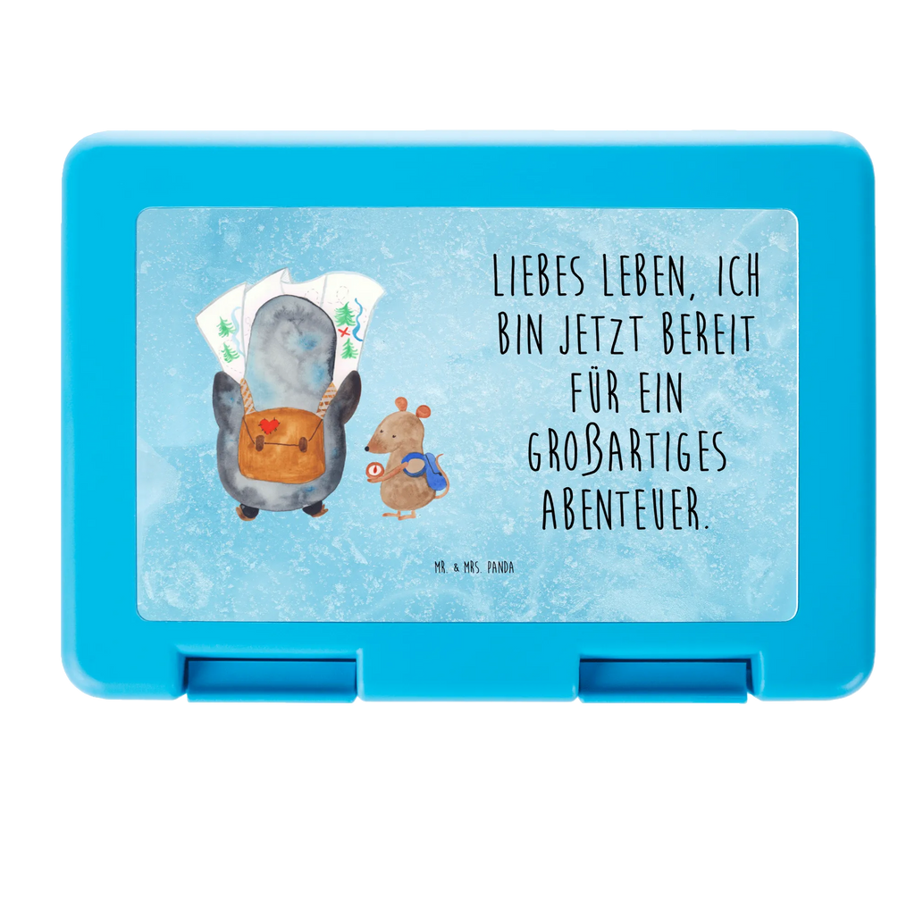 Brotdose Pinguin & Maus Wanderer - mit Spruch - Weiß