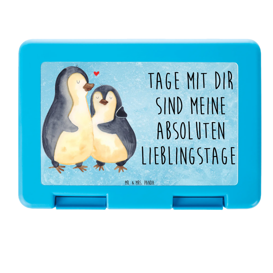 Brotdose Pinguin umarmend - mit Spruch - Eisblau