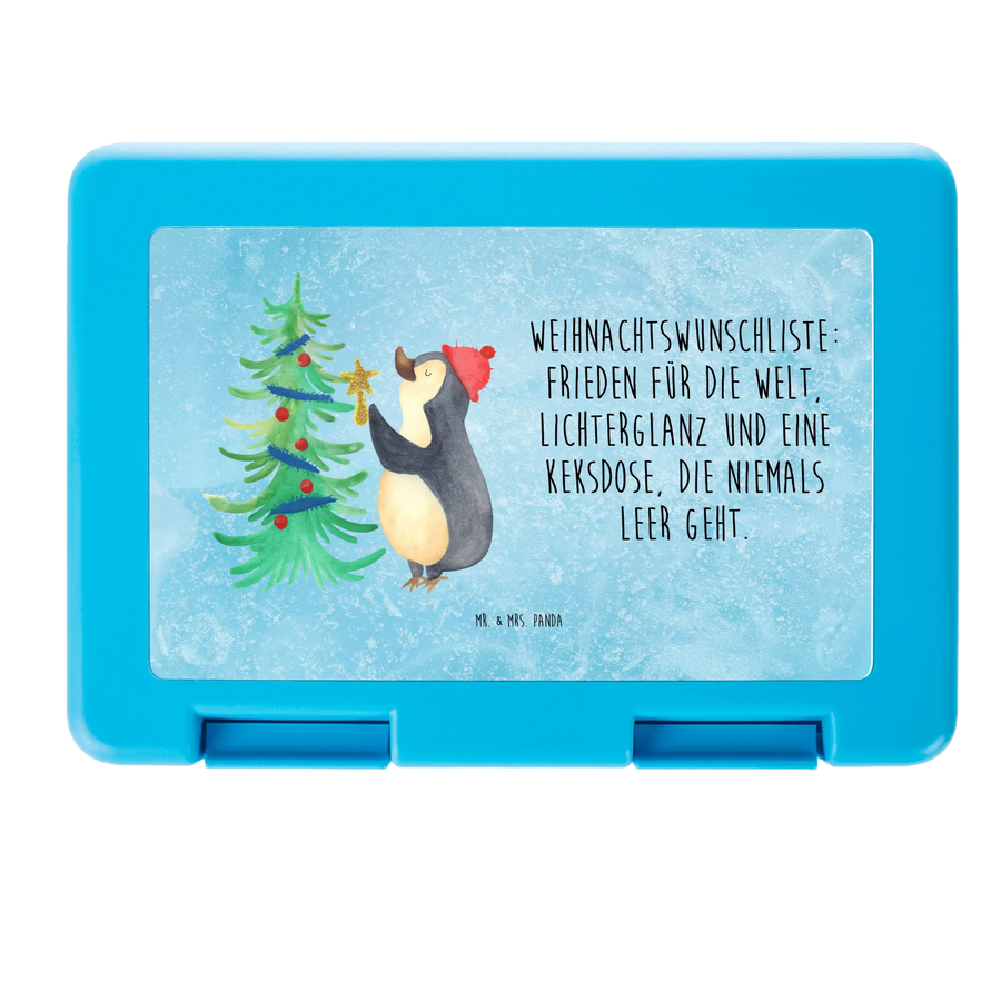 Brotdose Pinguin Weihnachtsbaum - mit Spruch - Eisblau