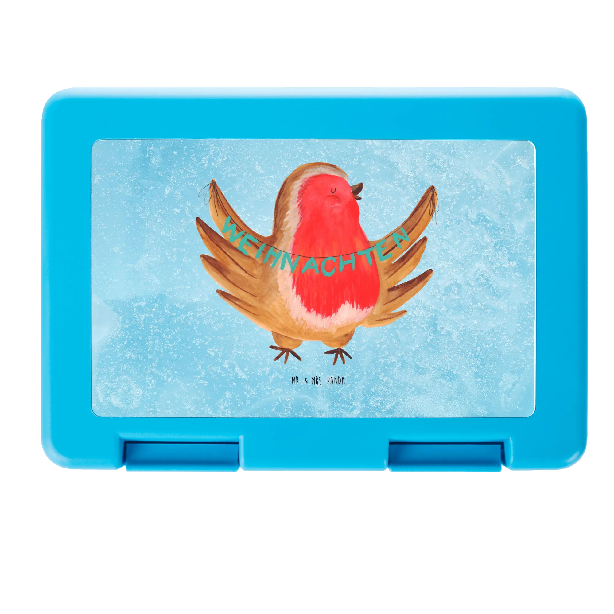 Brotdose Rotkehlchen Weihnachten - mit Spruch - Eisblau