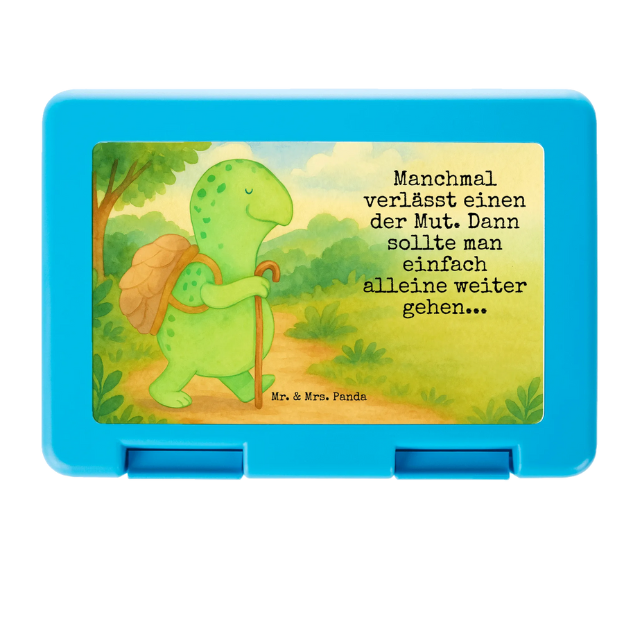 Mr. & Mrs. Panda Brotdose „Schildkröte Wanderer“ – Deine neue Lieblings-Lunchbox! Die liebevoll von Hand gezeichnete Schildkröte mit Rucksack und Gehstock begleitet Dich durch den Tag und schenkt Mut mit dem Spruch: „Manchmal verlässt einen der Mut. Dann sollte man einfach alleine weiter gehen...“ Diese Brotdose ist ideal für alle, die ein kleines Stück Wärme und Inspiration in ihrer Pause wollen.