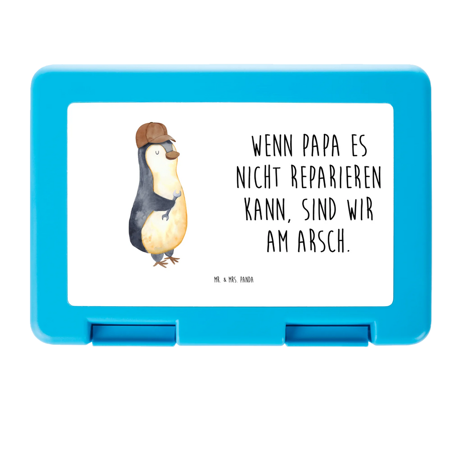 Diese Brotdose von Mr. & Mrs. Panda ist nicht nur praktisch, sondern auch ein Stück Familiengefühl. Mit dem frechen Spruch „Wenn Papa es nicht reparieren kann, sind wir am Arsch.“ und einem lässigen Pinguin mit Schraubenschlüssel wird jede Brotzeit zum Hingucker. Ideal als Brotdose, Lunchbox oder Brotbox für Schule, Büro und Picknick. 😊