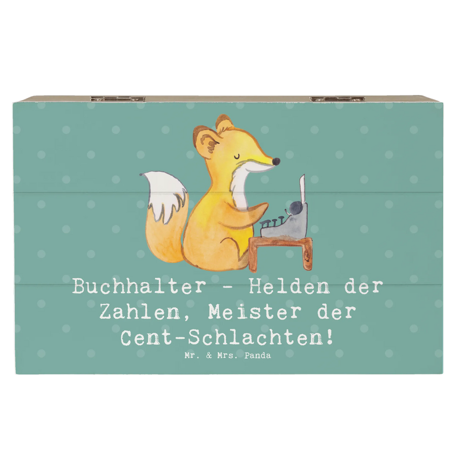 Die Schatulle trägt stolz den Slogan: 'Buchhalter - Helden der Zahlen, Meister der Cent-Schlachten!', was sie zu einem liebevollen Ausdruck von Wertschätzung für die harte Arbeit dieser Profis macht.