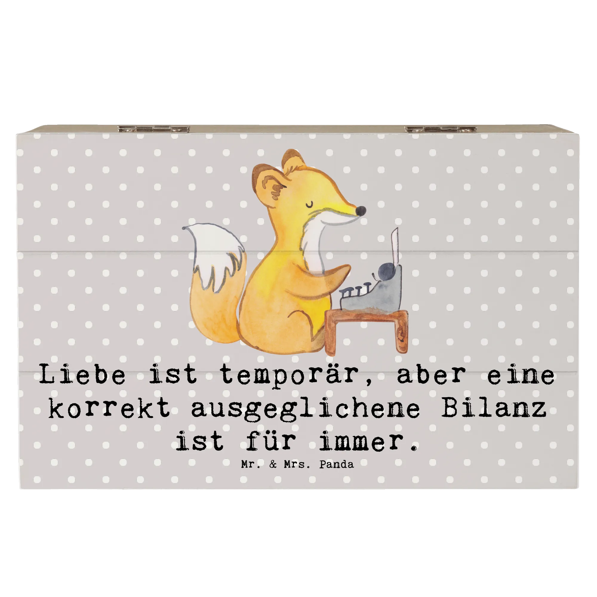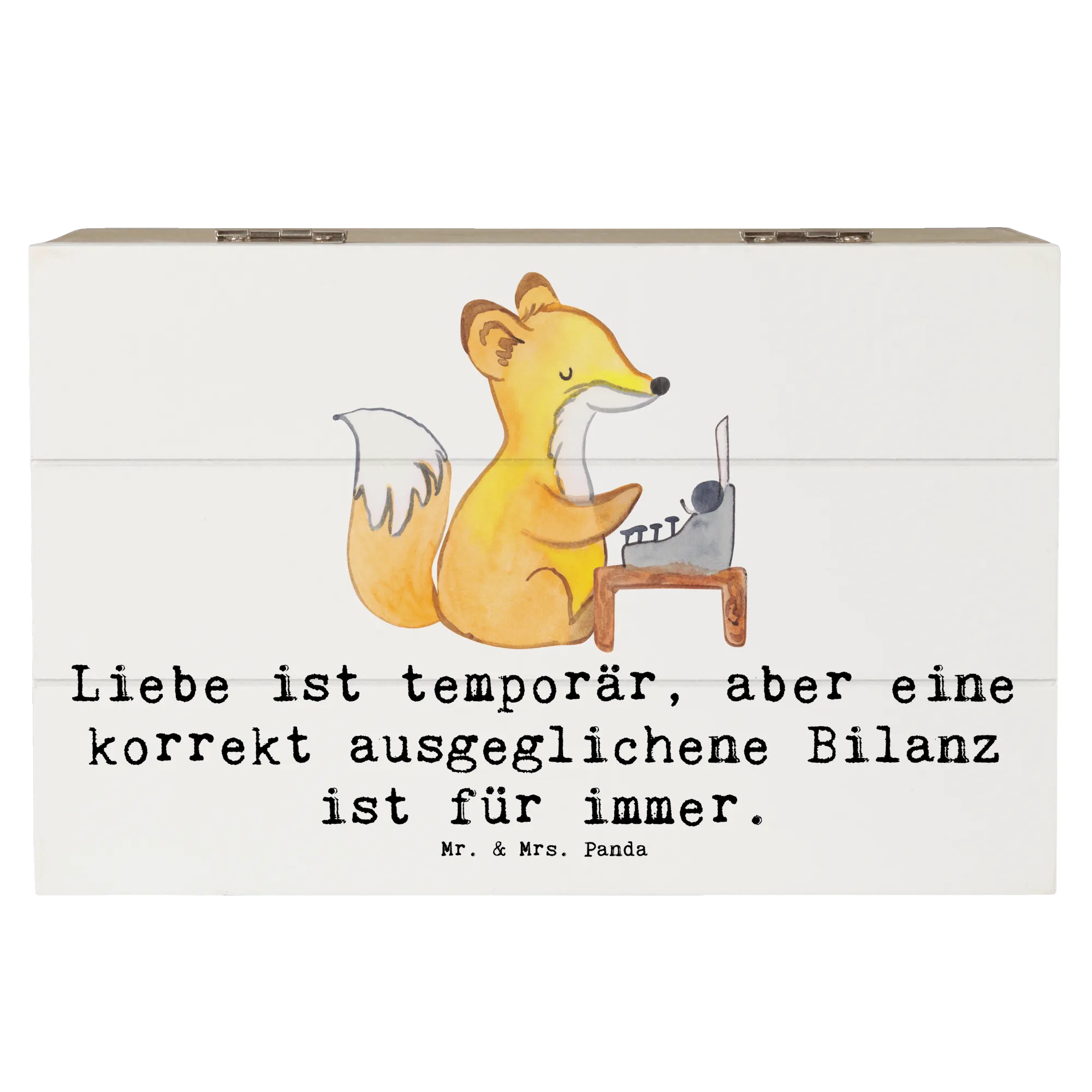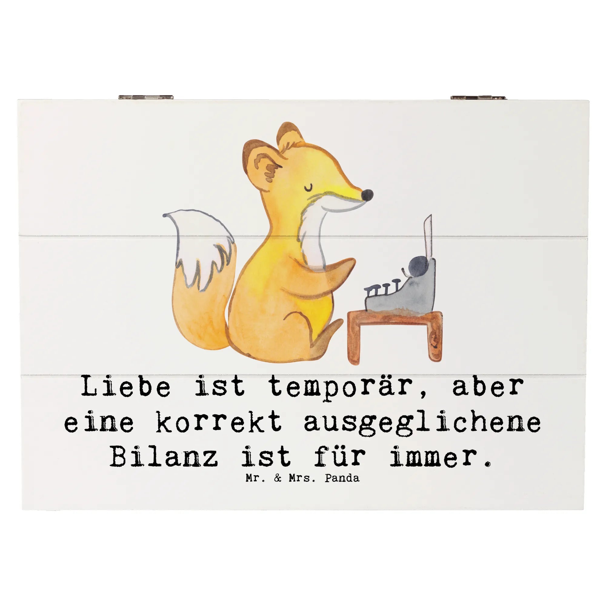Entdecke die bezaubernde Holzkiste für Buchhalter von Mr. & Mrs. Panda! Diese wunderschöne Erinnerungskiste ist der perfekte Aufbewahrungsort für all deine wertvollen Schätze und Erinnerungen. Mit dem liebevoll gestalteten Motiv eines Buchhalters und dem Spruch "Liebe ist temporär, aber eine korrekt ausgeglichene Bilanz ist für immer" wird diese Kiste zu ganz besonderen Begleiter für jeden Finanzprofi.