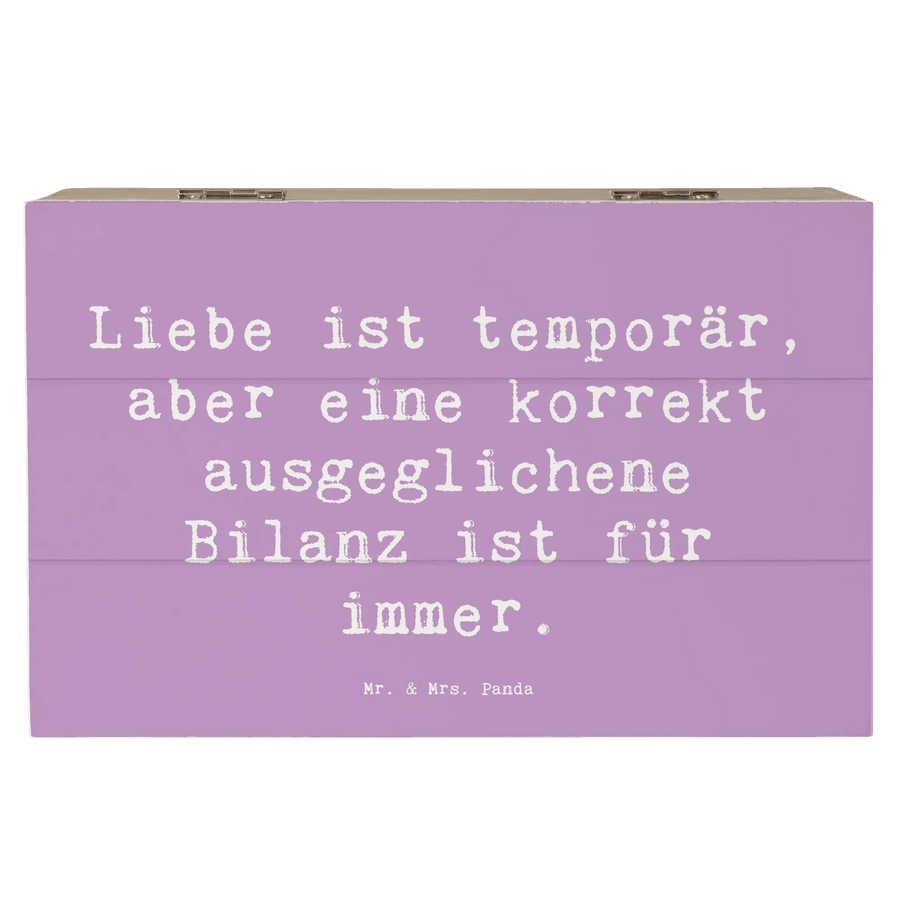 Die wunderschöne Holzkiste von Mr. & Mrs. Panda ist das ideale Geschenk für alle Buchhalter und Finanzexperten in Deinem Leben. Mit ihrer liebevollen Gestaltung, die das Motto "Liebe ist temporär, aber eine korrekt ausgeglichene Bilanz ist für immer" trägt, ist diese Kiste nicht nur ein praktischer Aufbewahrungsort für all Deine wichtigen Unterlagen, Rechnungen und Finanzberichte, sondern auch ein ganz persönliches Geschenk, das Herzen berührt.