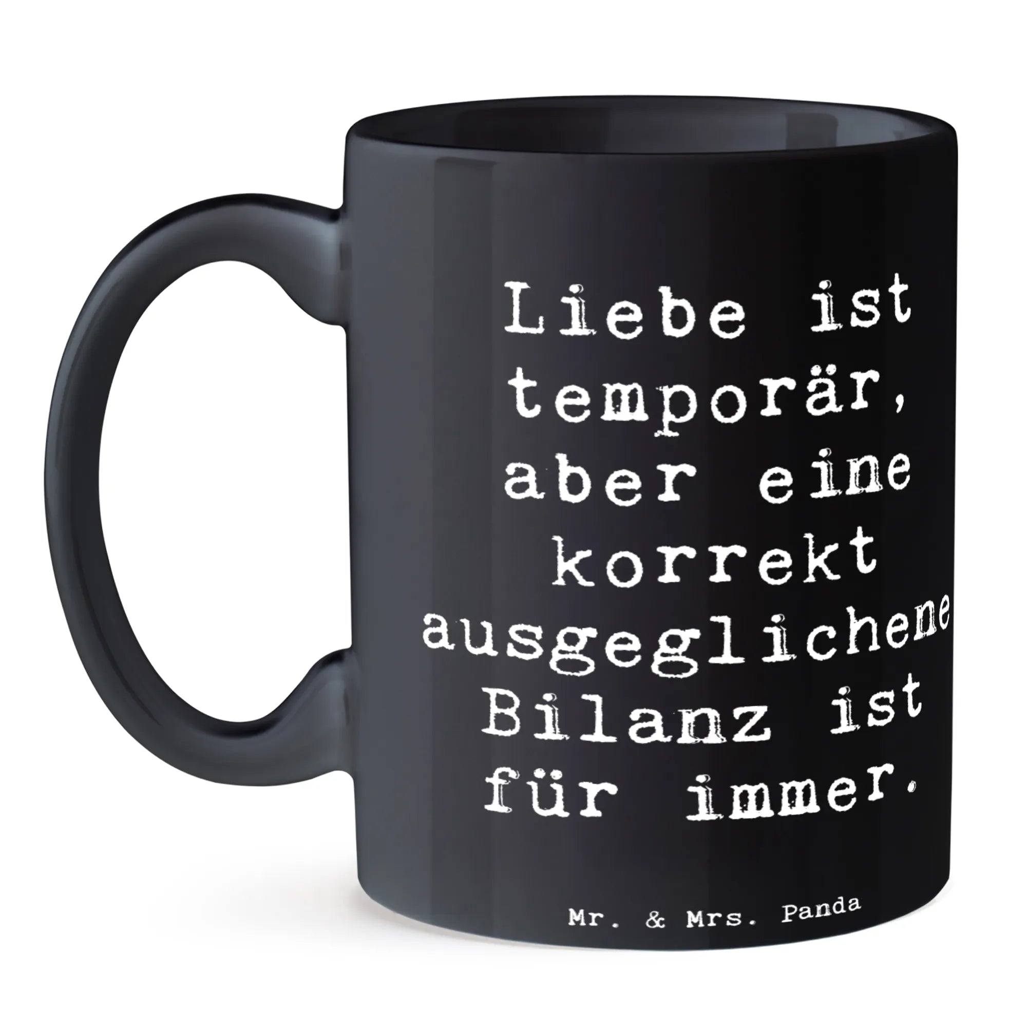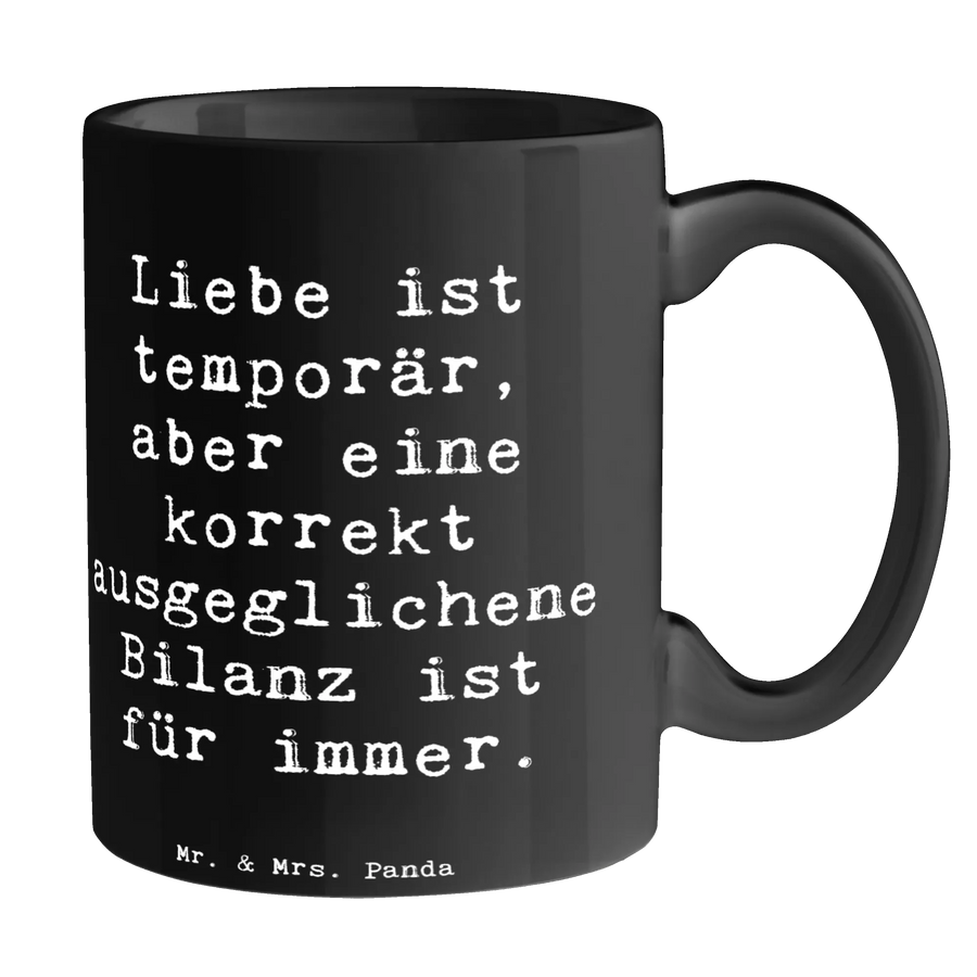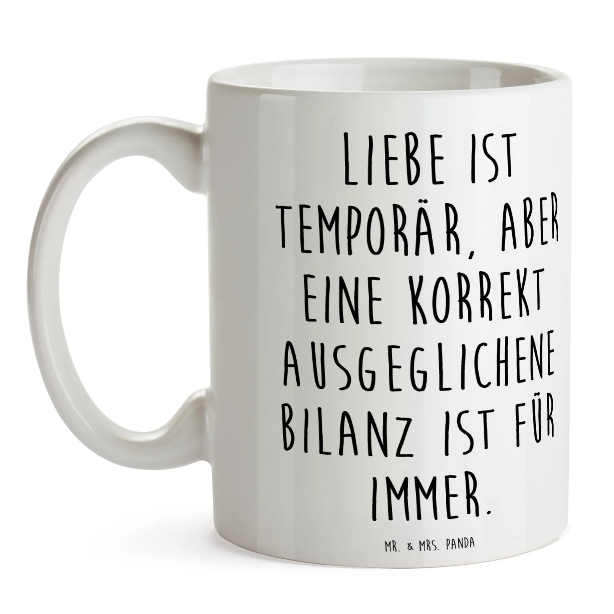 Entdecke die perfekte Tasse für alle Buchhalter und Zahlenliebhaber! Die wunderschöne Keramiktasse von Mr. & Mrs. Panda begeistert nicht nur mit ihrem charmanten Design, sondern auch mit einem cleveren Spruch: "Liebe ist temporär, aber eine korrekt ausgeglichene Bilanz ist für immer." Dies macht sie zu einem tollen Geschenk für Berufseinsteiger, Jubilare oder einfach für Dich selbst, um jeden Schluck Deines Kaffees oder Tees zu zelebrieren.