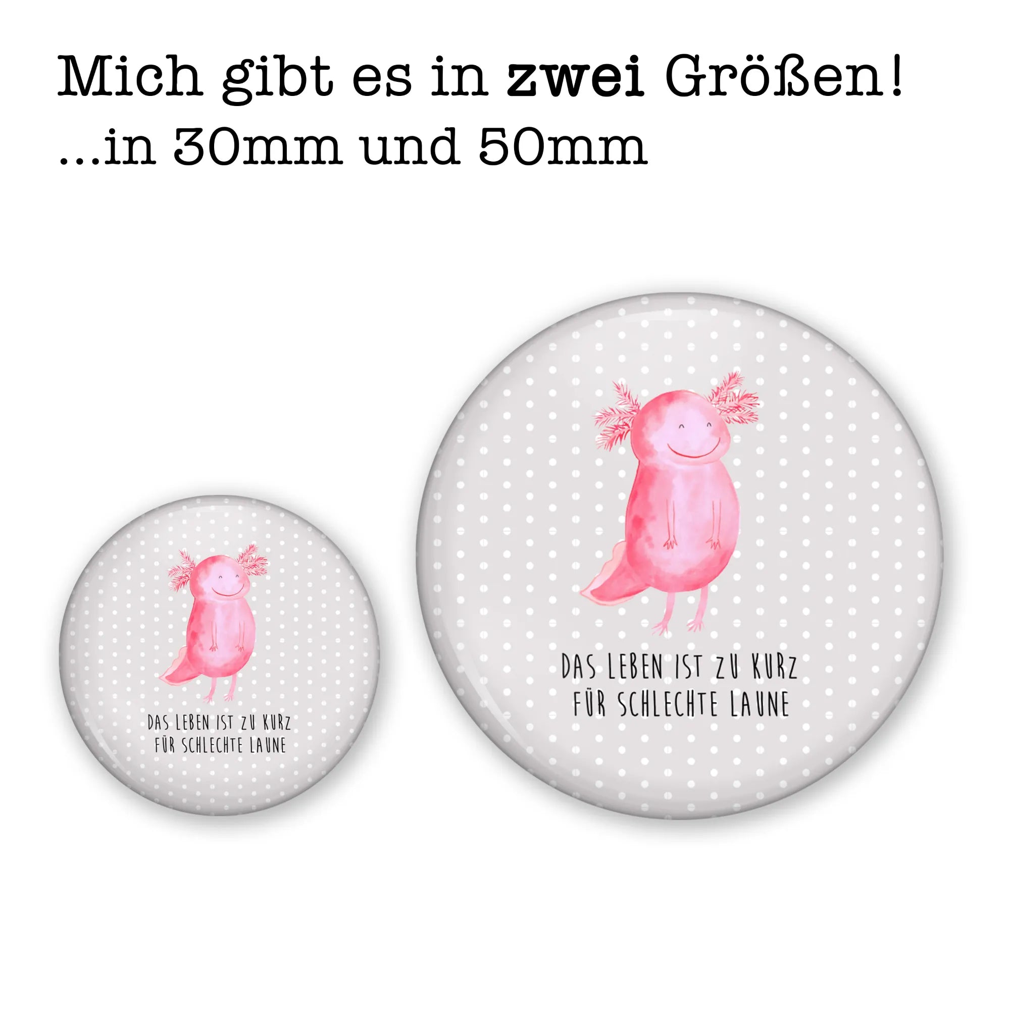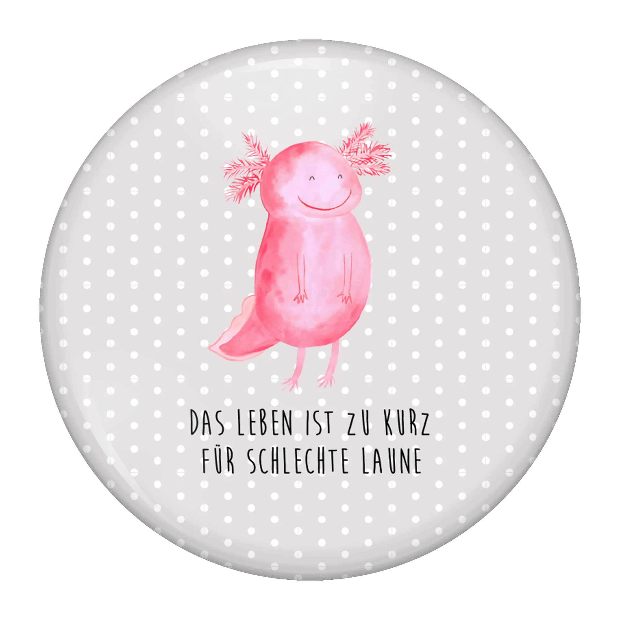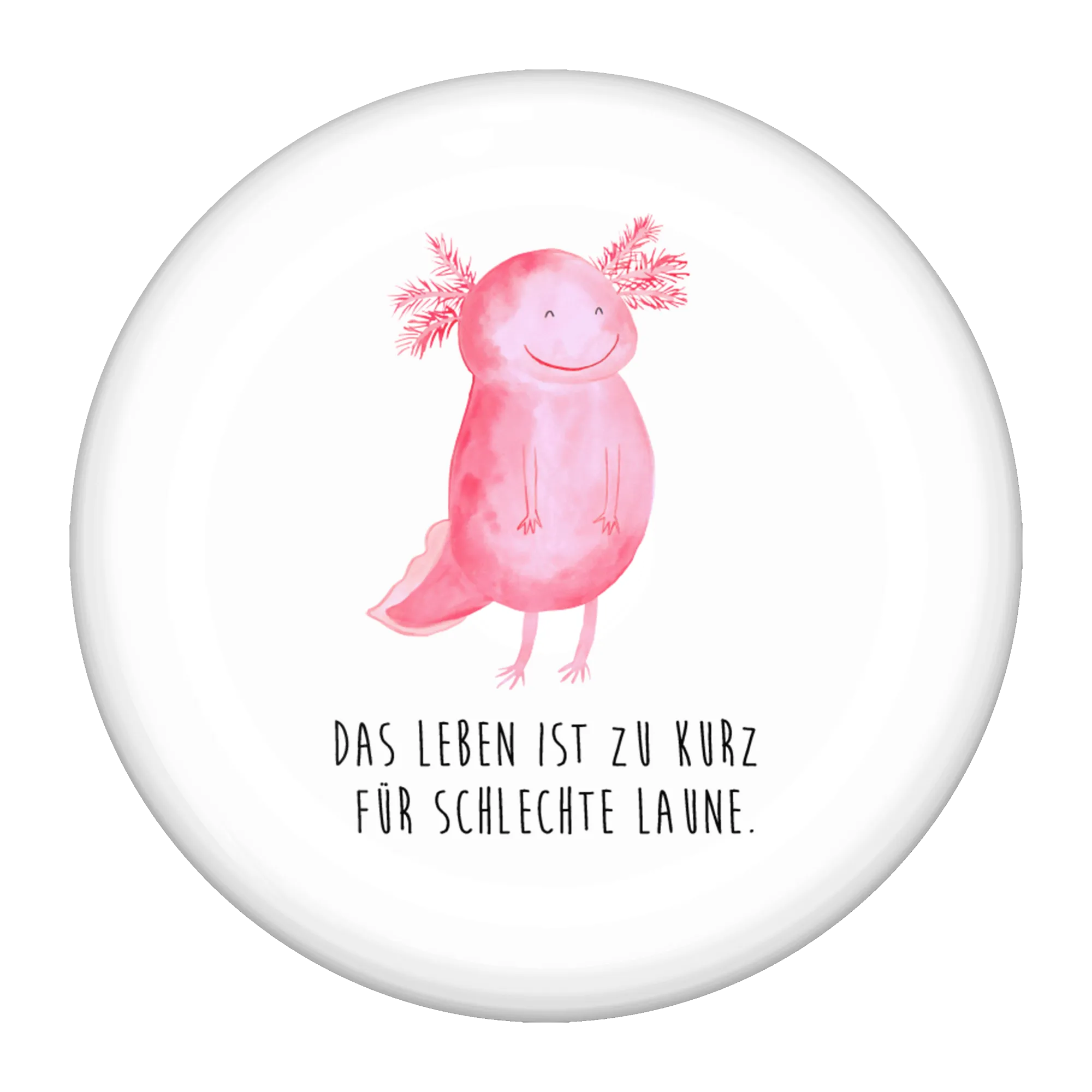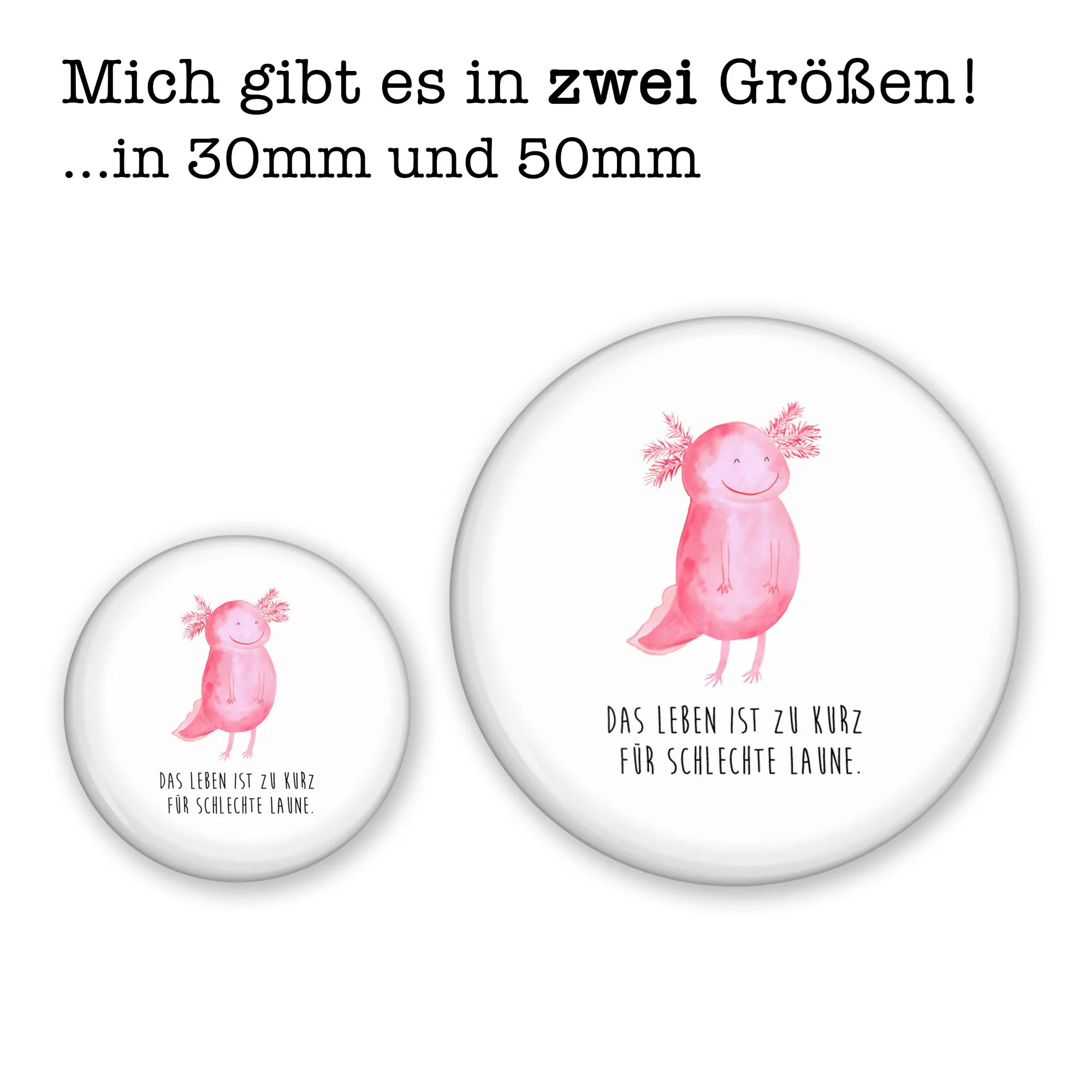 Entdecke den bezaubernden 50mm Button "Axolotl glücklich" von Mr. & Mrs. Panda - das perfekte Geschenk für alle, die gute Laune und Motivation lieben!