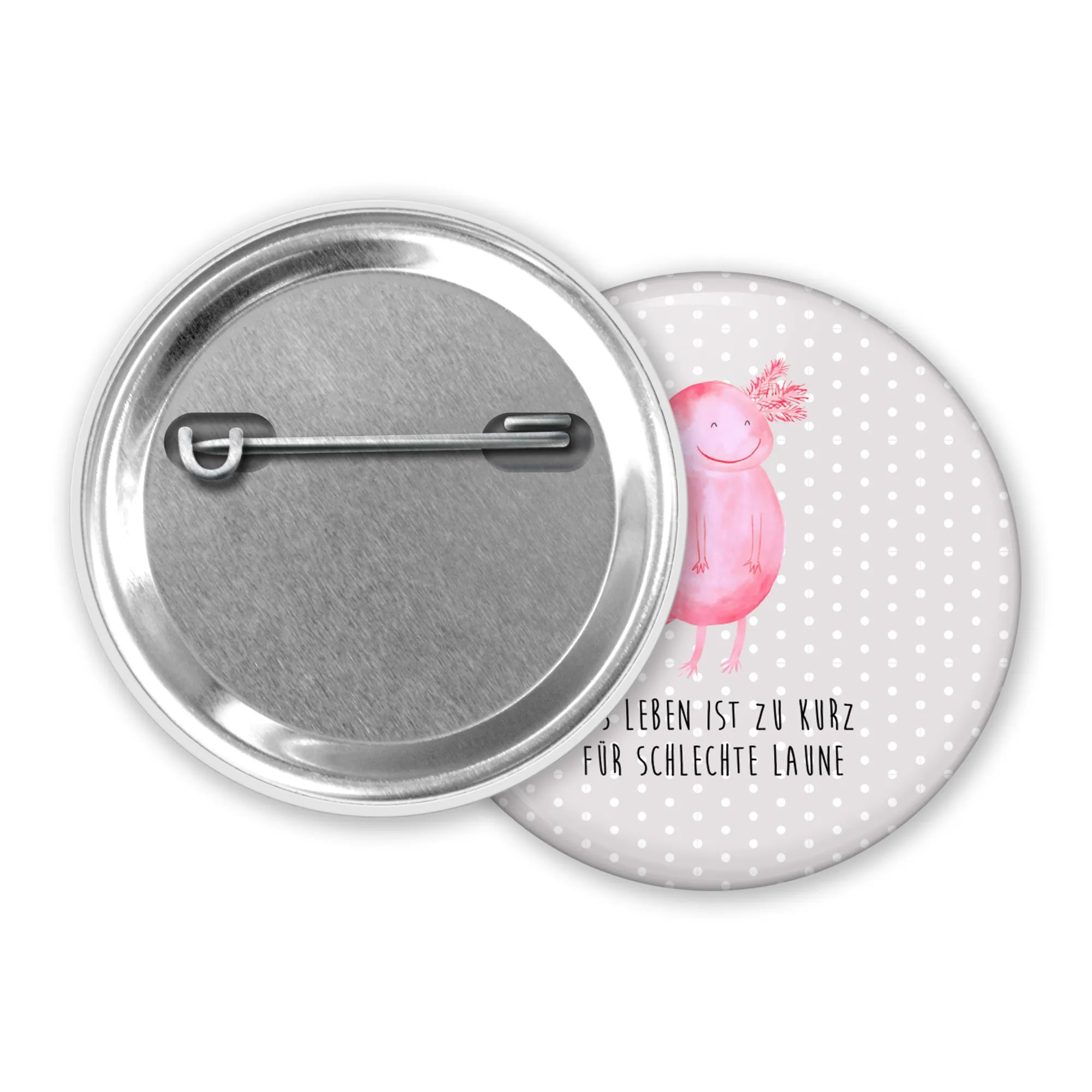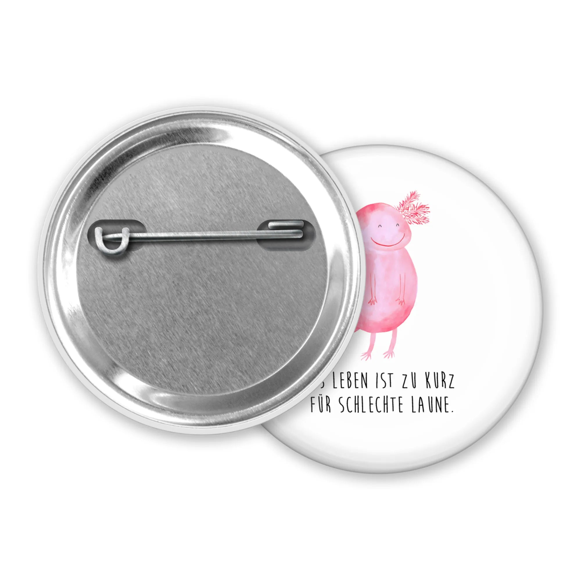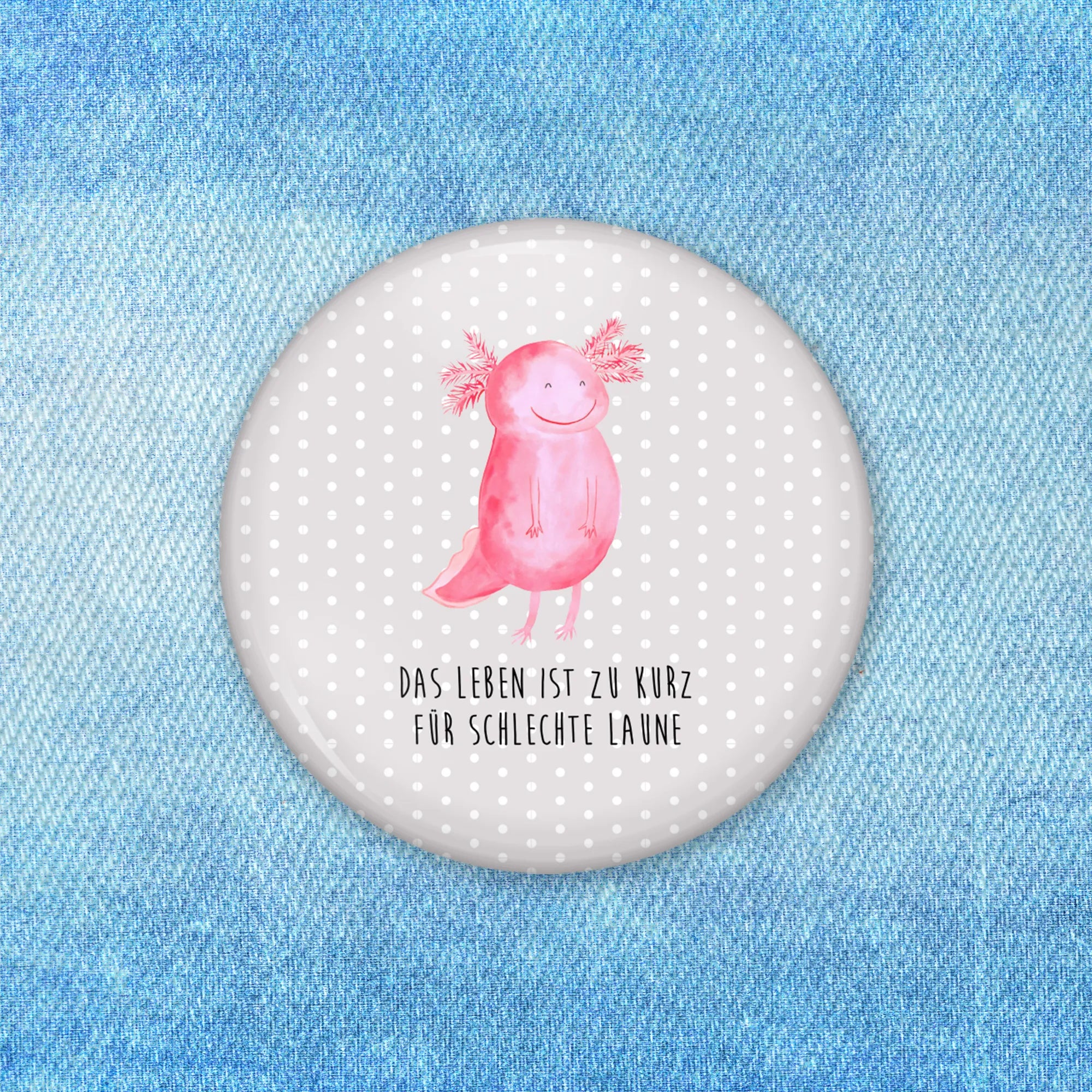 Der niedliche Axolotl, der im Wasser schwimmt und gut gelaunt aussieht, erinnert uns daran, dass das Leben viel zu kurz ist für schlechte Laune! Ob als kleines Mitbringsel, zum Geburtstag oder als Dankeschön – dieser Button ist ein liebevolles Geschenk, das garantiert für Begeisterung sorgt.